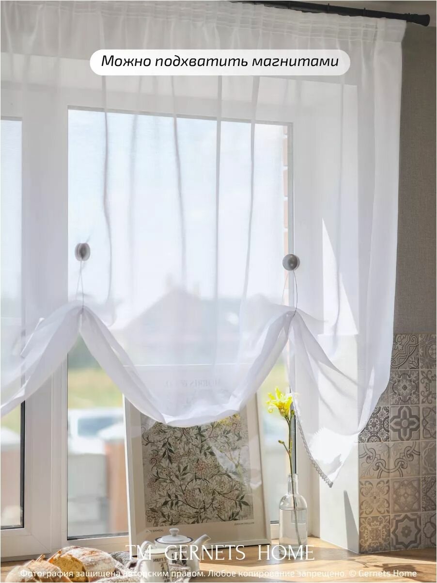 СохранитьТюль под лён ширина 260 см высота 130 см для кухни короткий интересное: