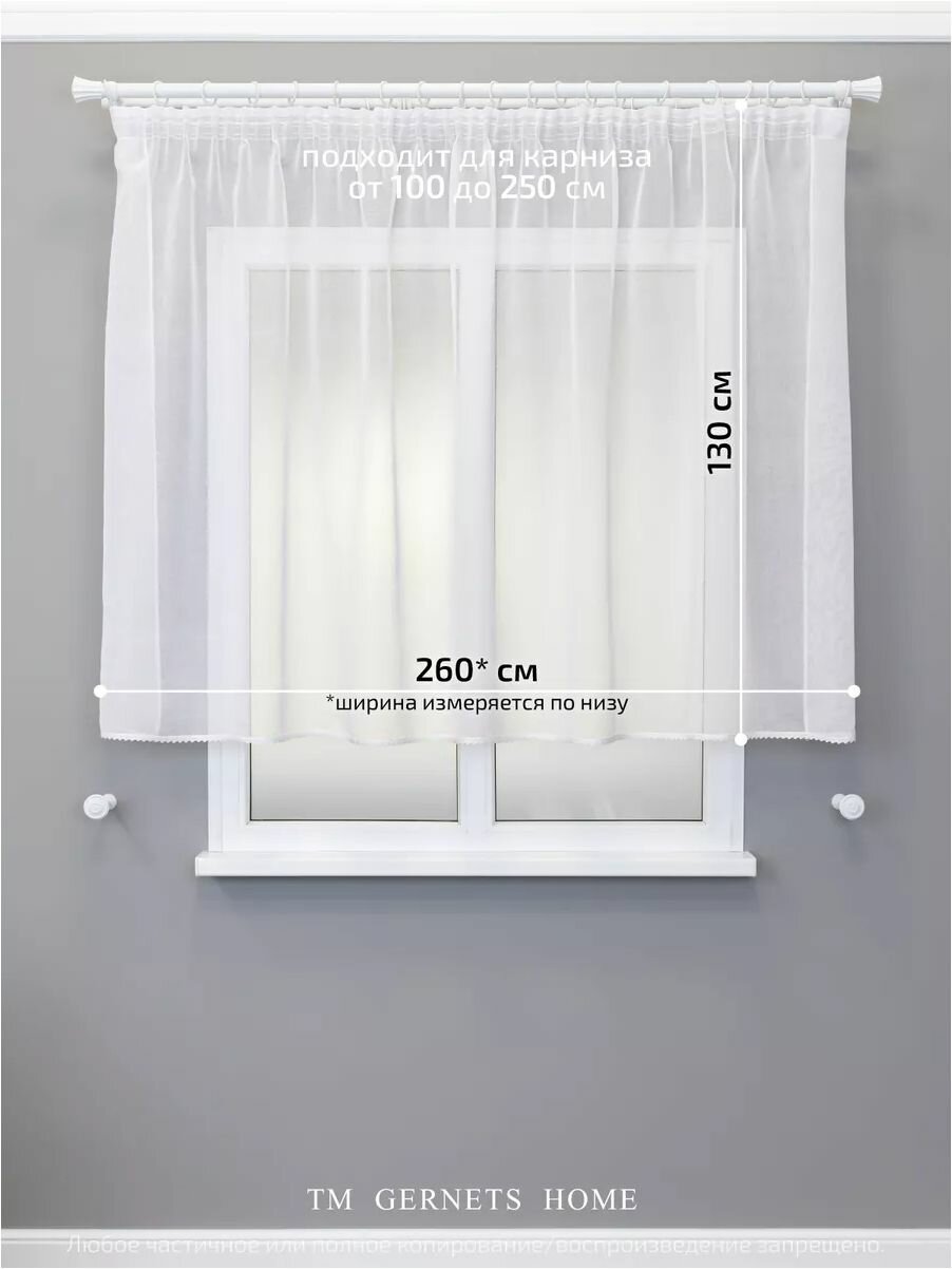 Тюль арка ширина 260 высота 120 см на кухню короткая