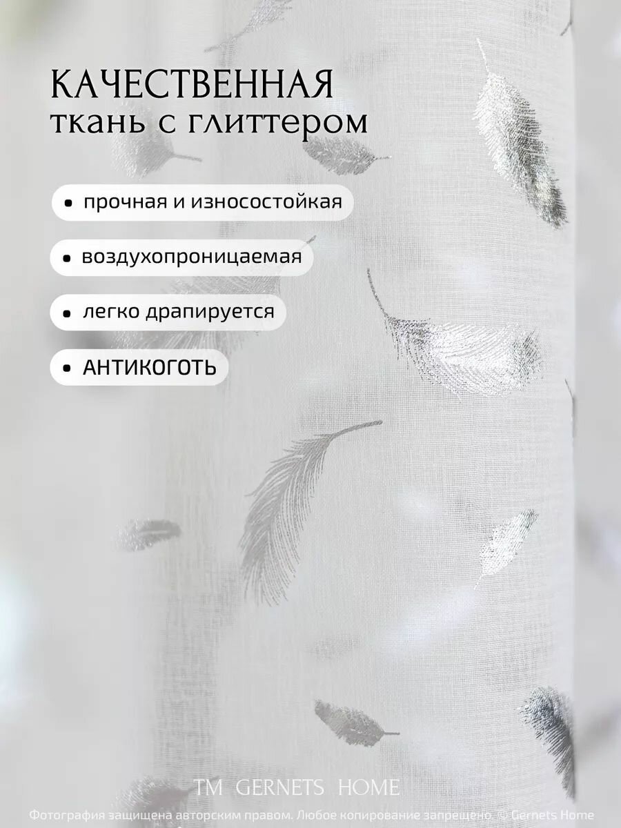 СохранитьТюль под лен ширина 260 см высота 160 см на кухню с рисунком "серебро перья" короткая интересное: