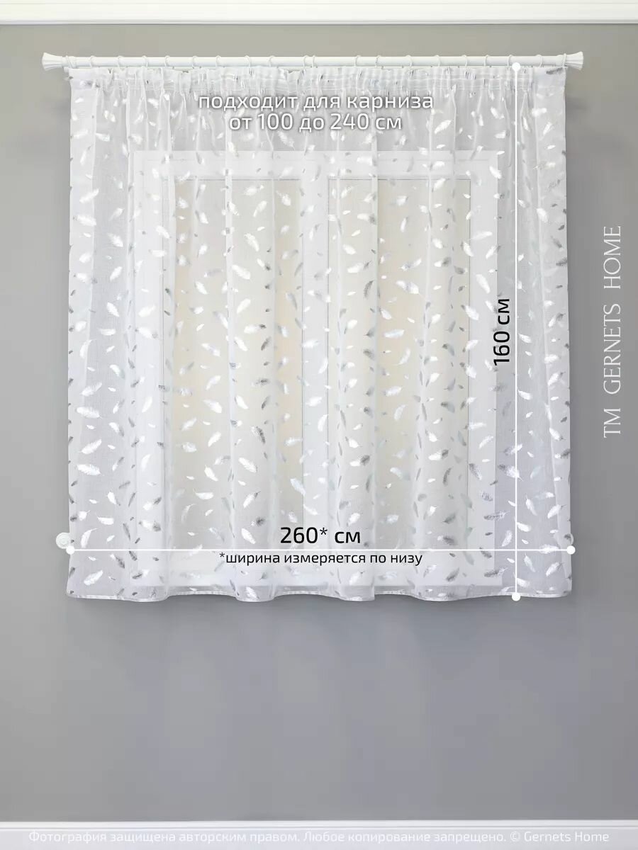 Тюль арка ширина 260 высота 120 см на кухню с рисунком "серебро перья"