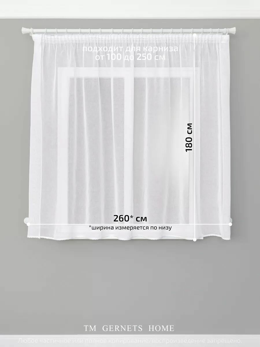 Тюль арка ширина 260 высота 120 см на кухню короткая