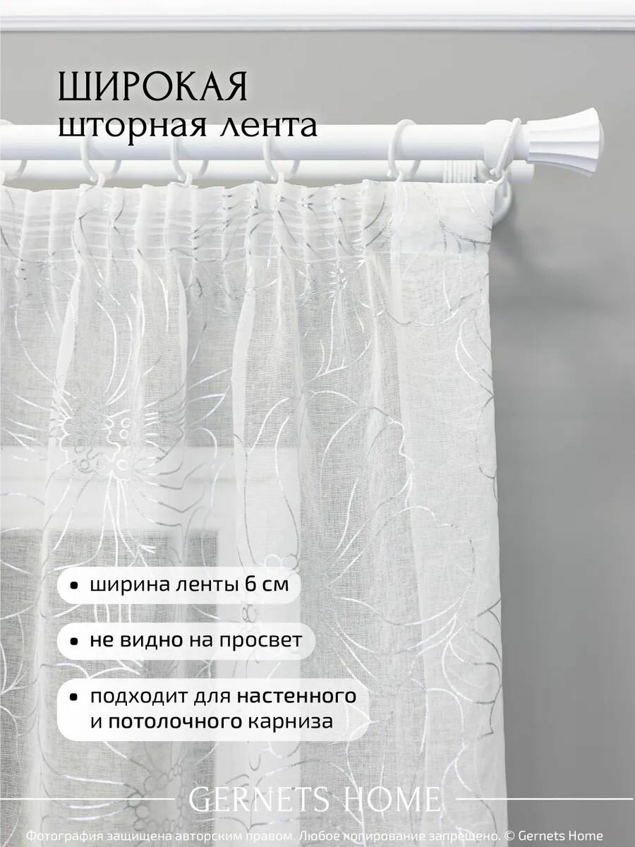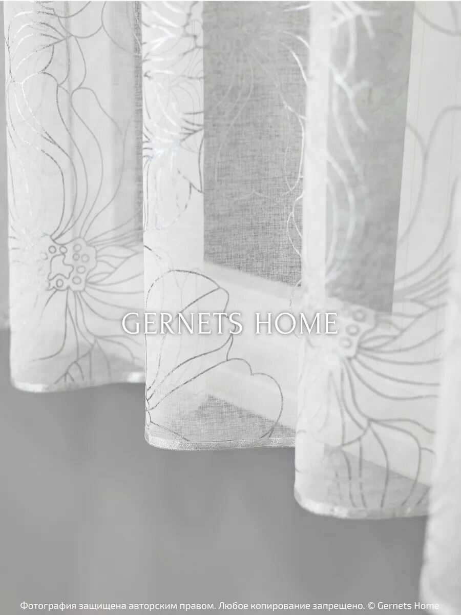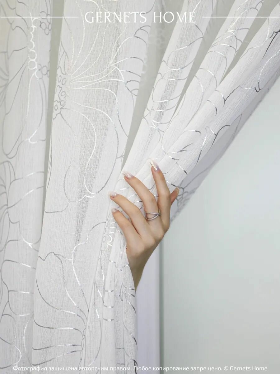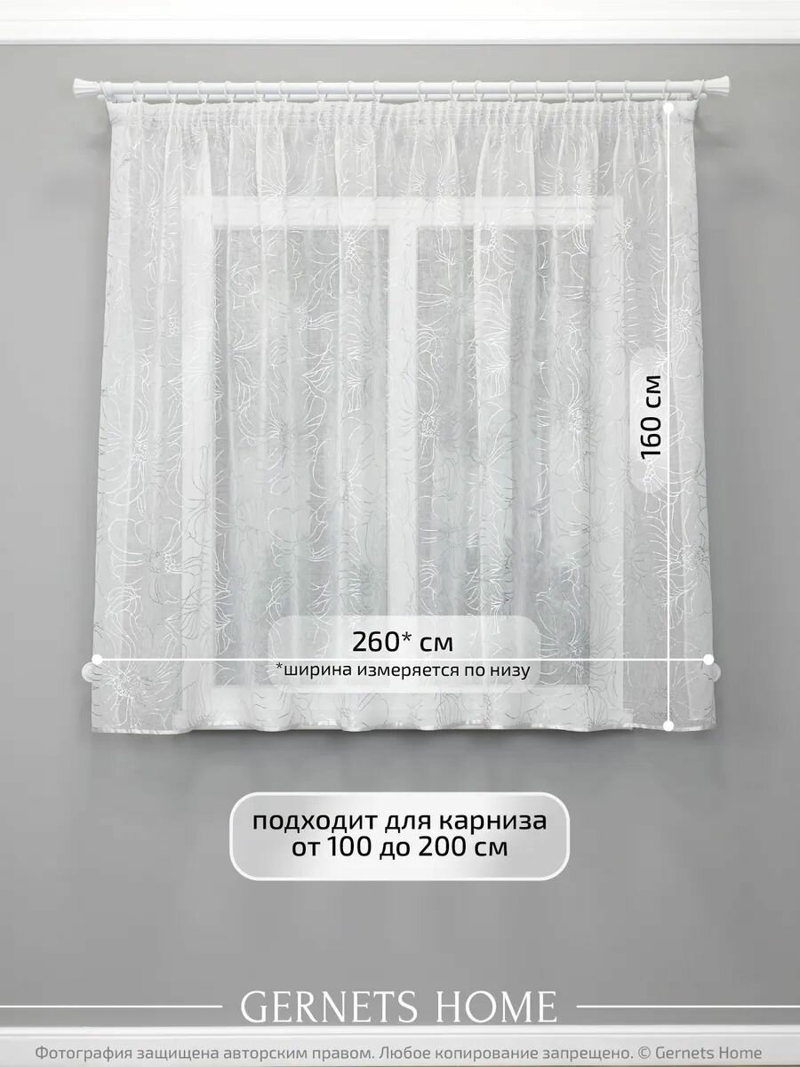Купить Тюль под лен 260 см ширина 160 см высота серебро-цветы короткий
