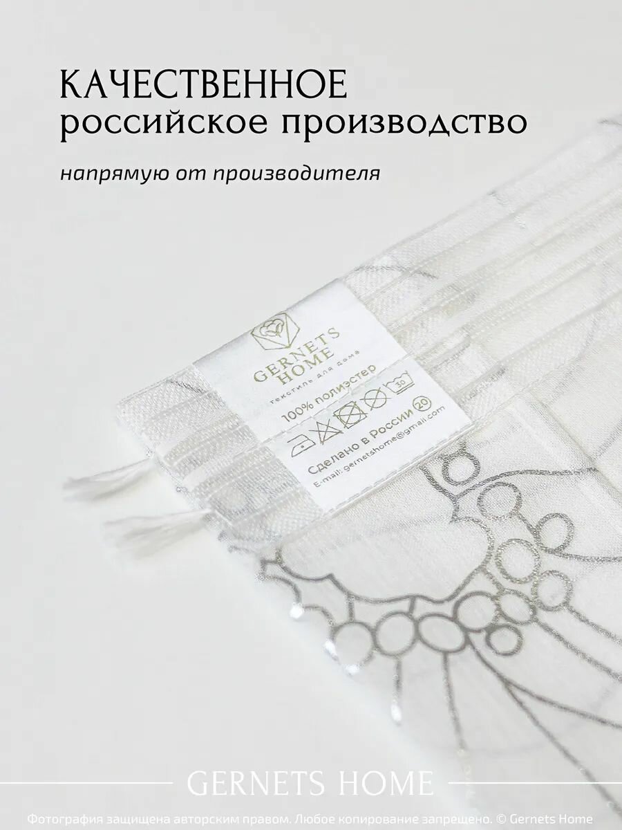 Тюль арка ширина 260 высота 120 см на кухню с рисунком "серебро круги" короткая
