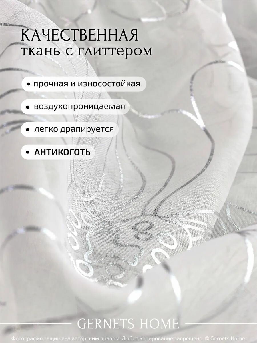 СохранитьТюль под лен 260 см ширина 160 см высота серебро-цветы короткий интересное: