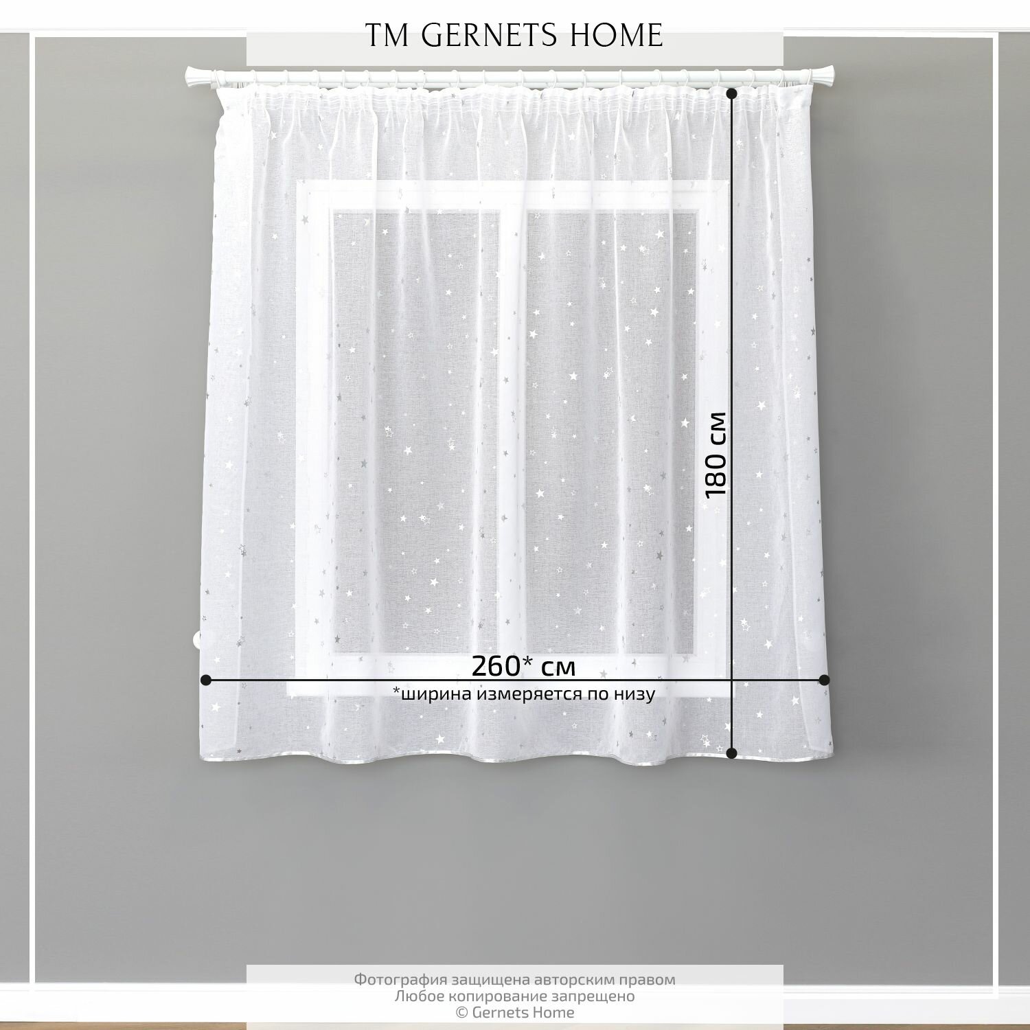 Купить Тюль под лен ширина 260 высота 180 см со звёздами на кухню короткая