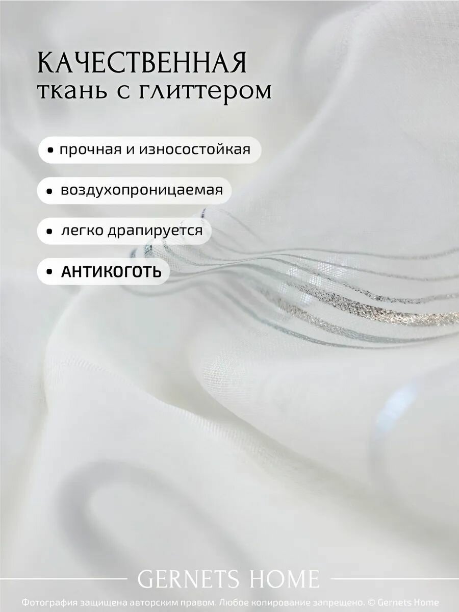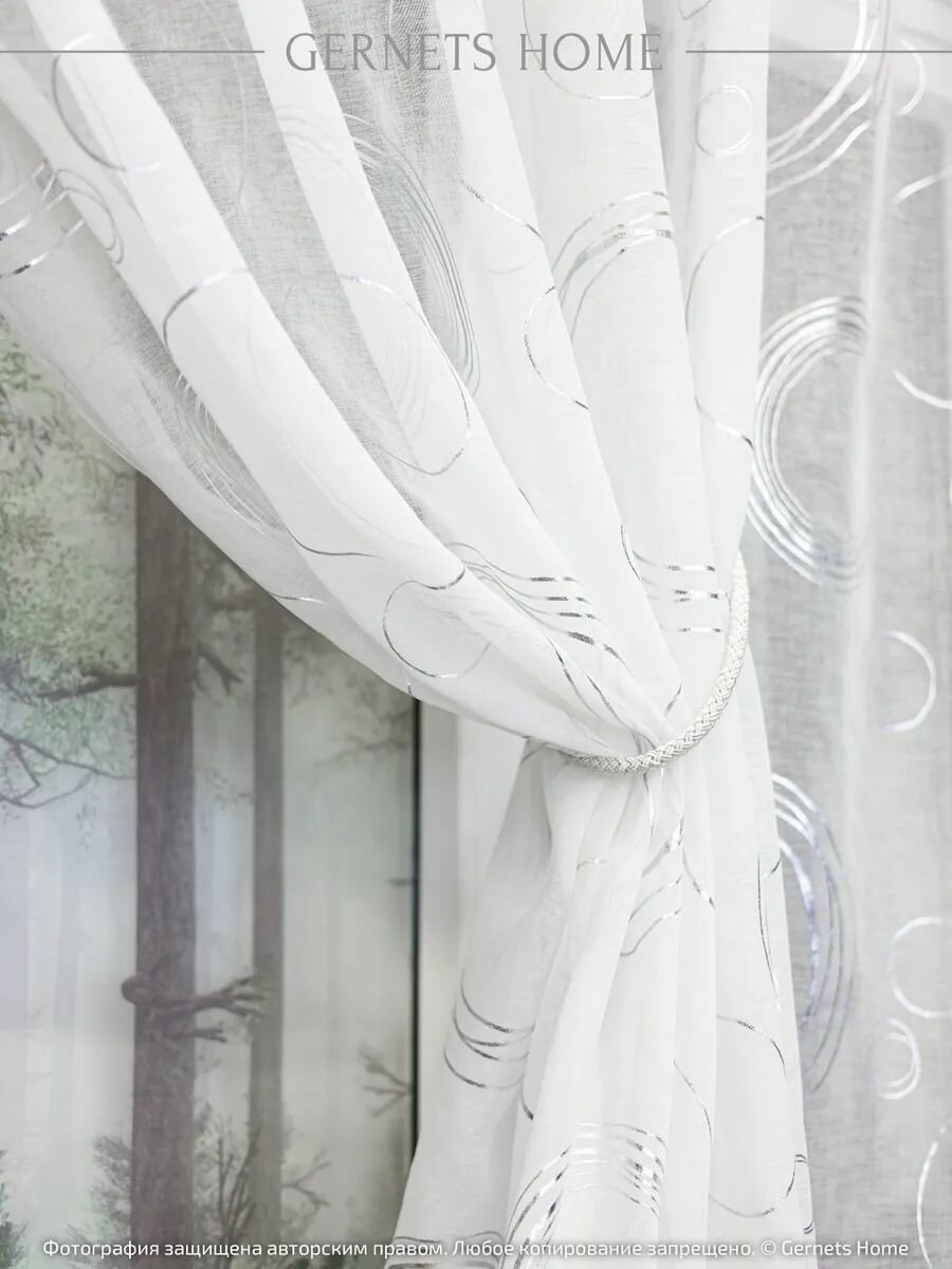 Тюль под лен 260х160см с рисунком серебро-круги короткий