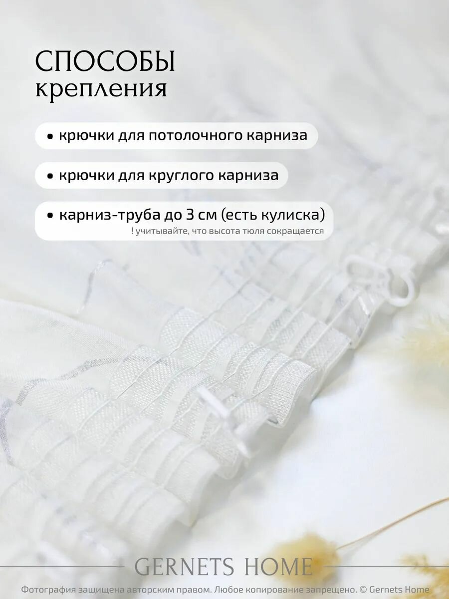 Тюль под лен 260 см ширина 160 см высота серебро-цветы короткий