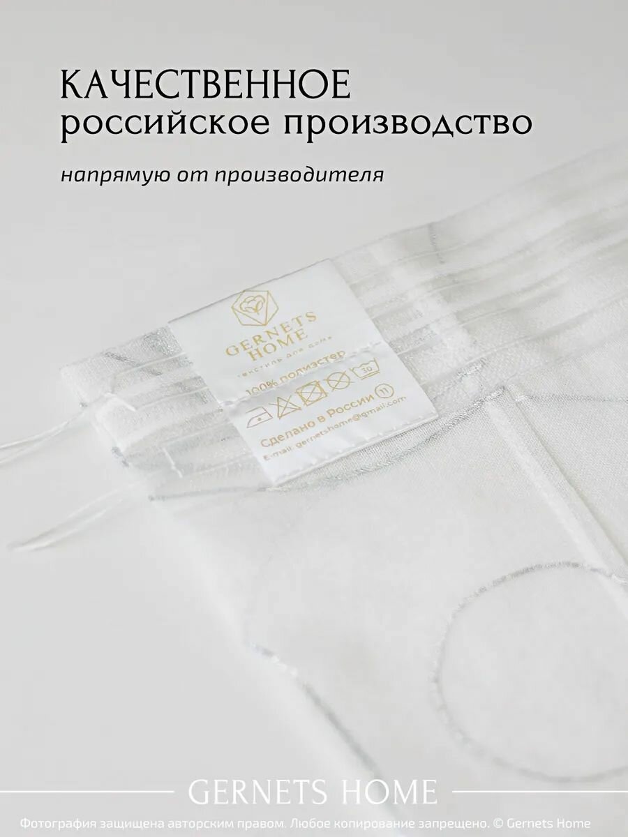 Тюль арка ширина 260 высота 120 см на кухню с рисунком "серебро круги" короткая