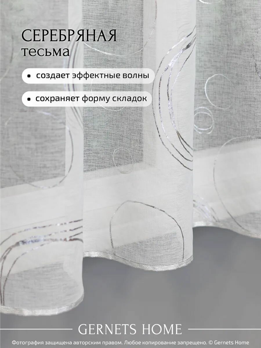 СохранитьТюль под лён ширина 260 высота 180 см с рисунком для кухни "серебро круги" короткая интересное: