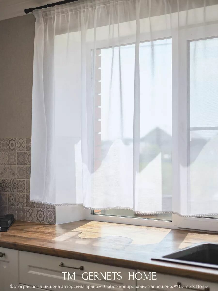 СохранитьТюль под лён ширина 260 см высота 160 см для кухни короткий интересное: