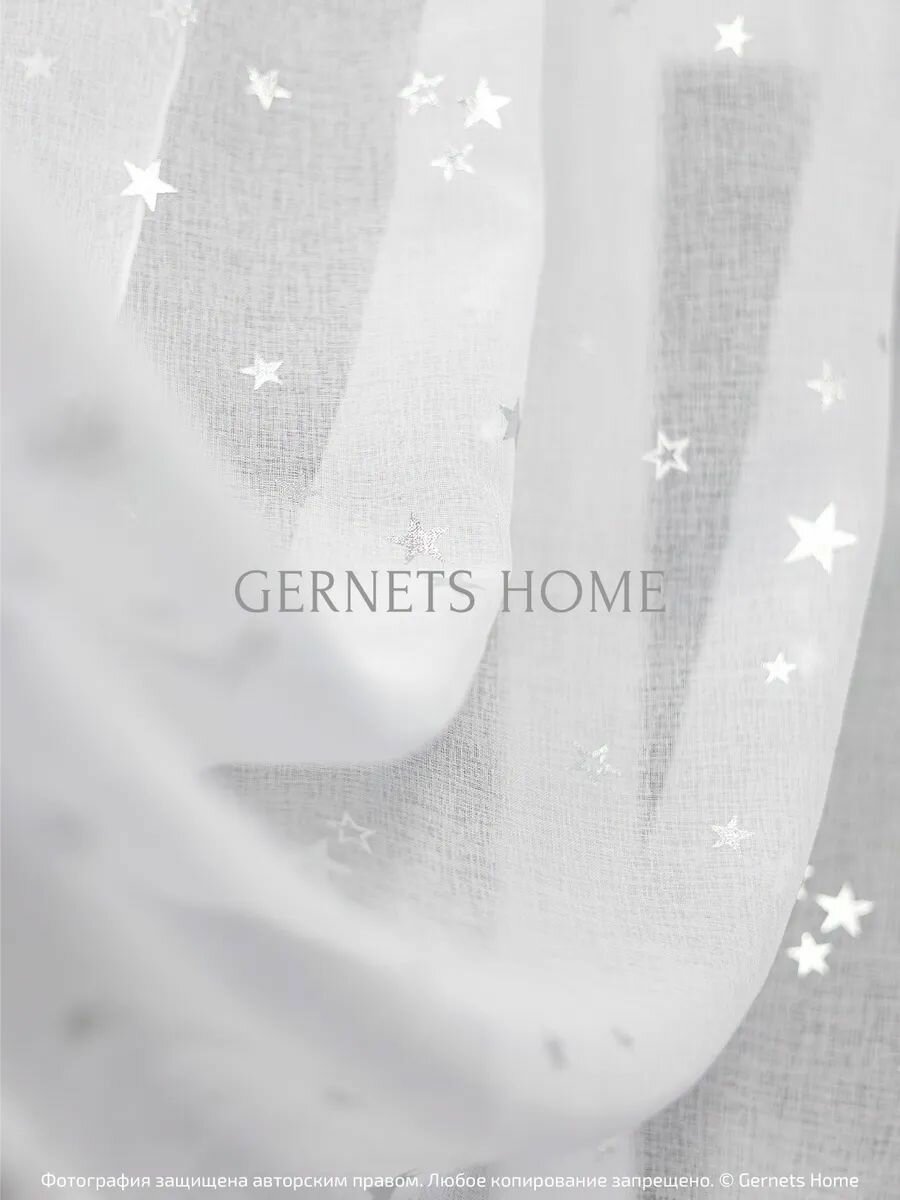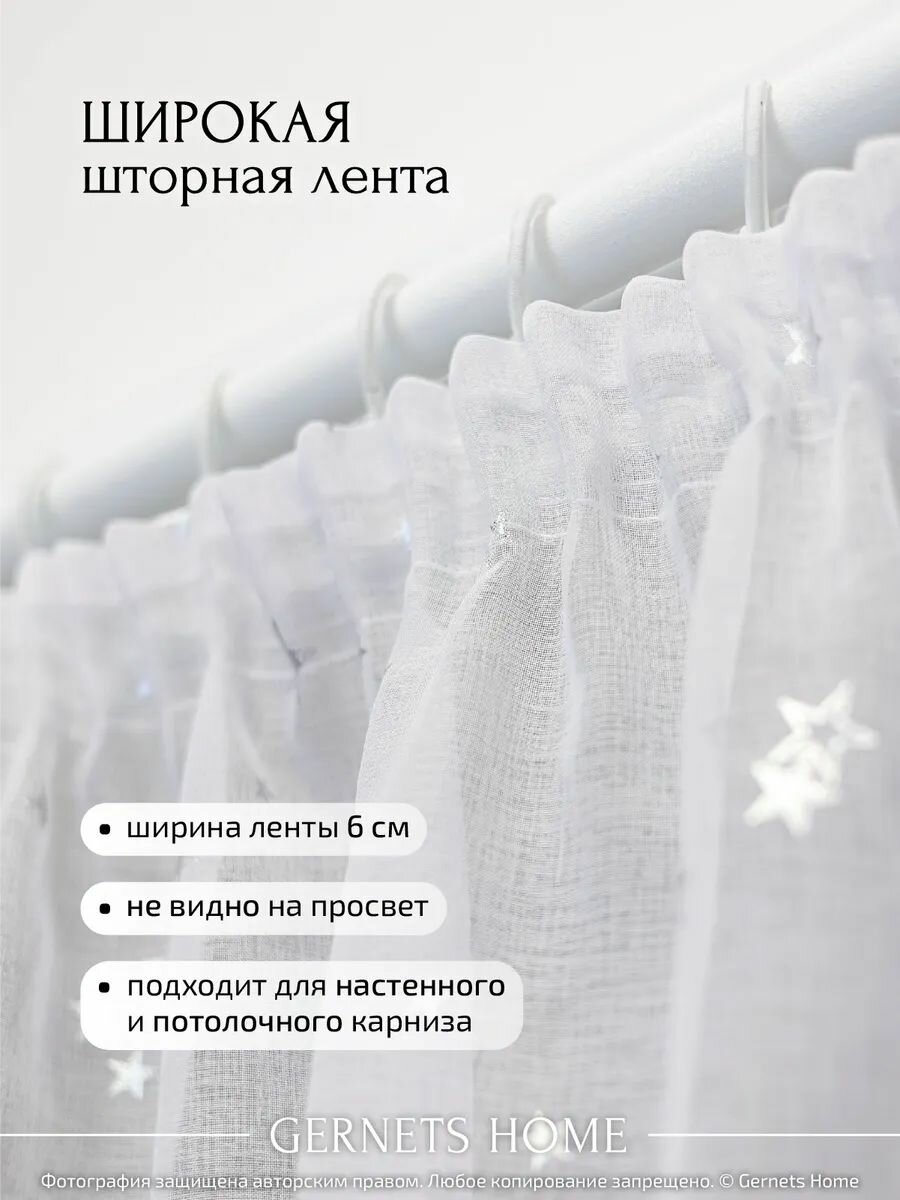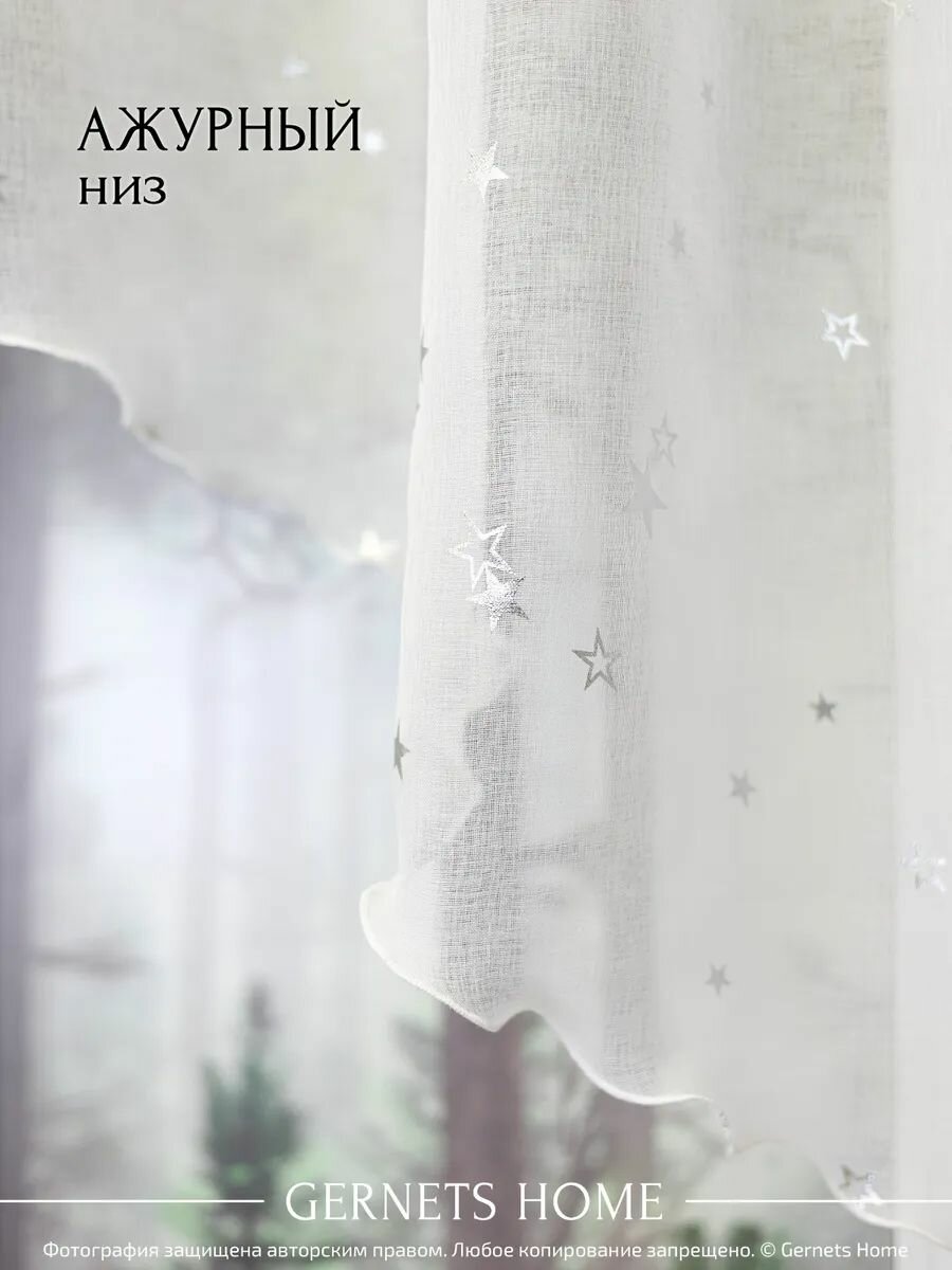 Тюль под лен ширина 260 высота 180 см со звёздами на кухню короткая