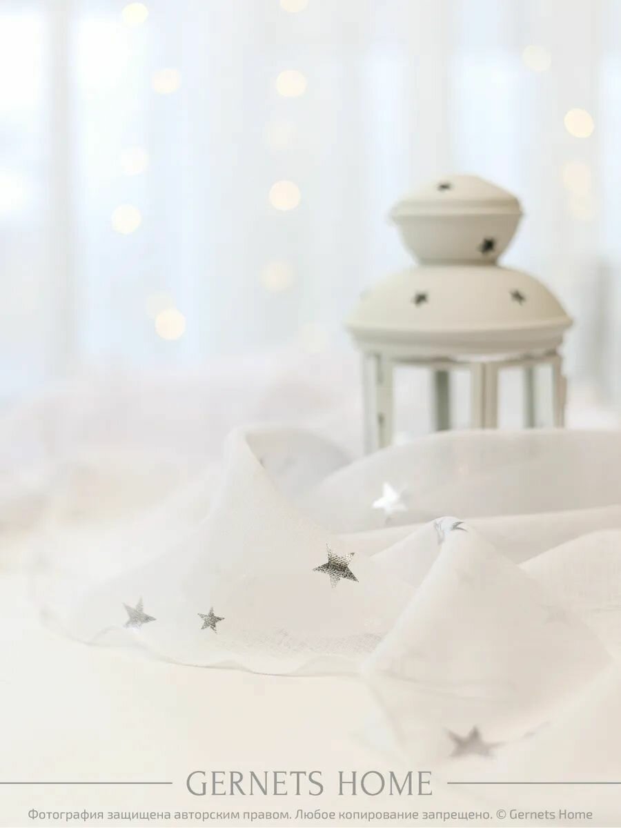 СохранитьТюль арка ширина 260 высота 120 см на кухню с рисунком "серебро звёзды" короткая интересное: