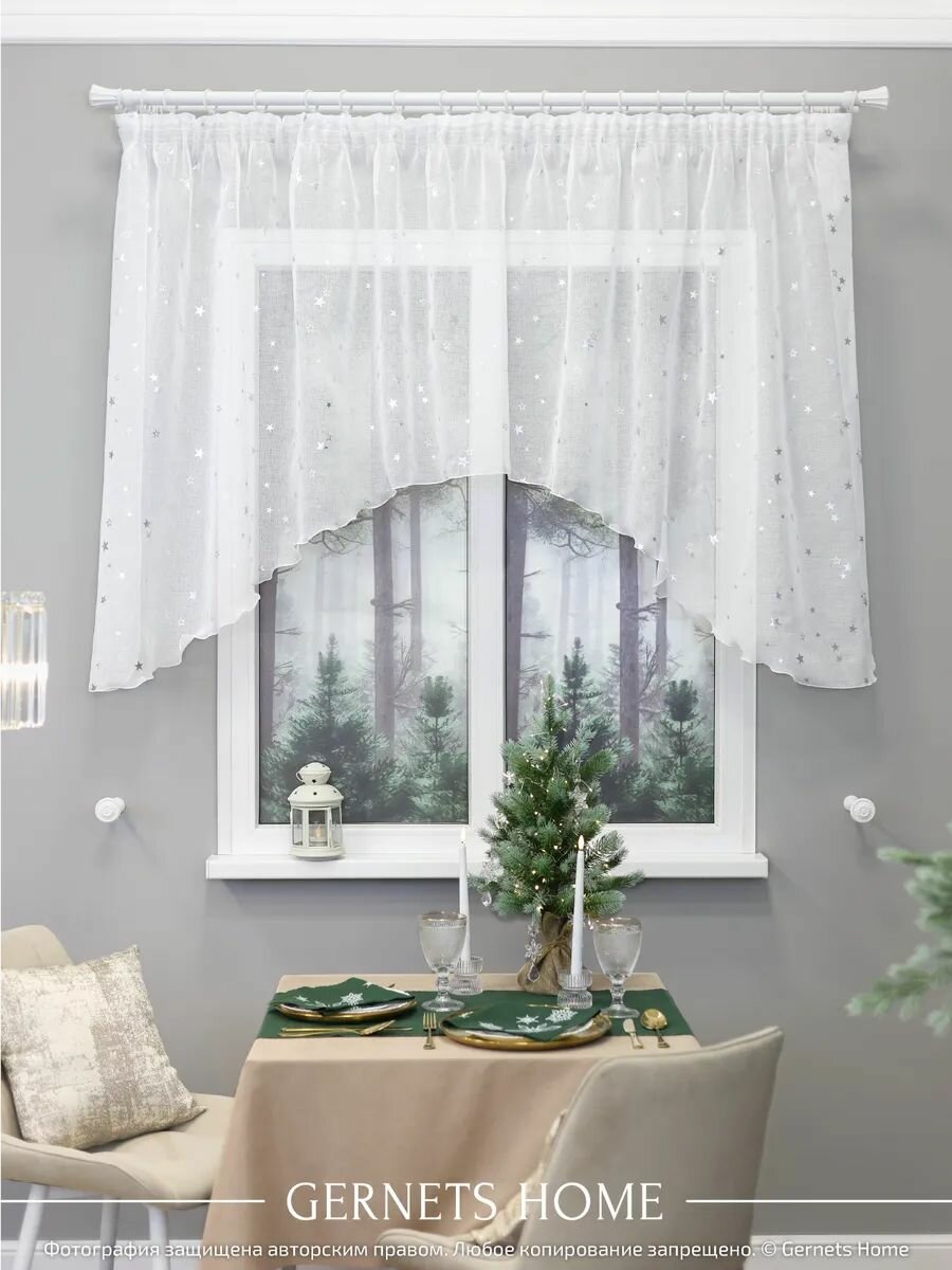 Купить Тюль арка ширина 260 высота 120 см на кухню с рисунком "серебро звёзды" короткая