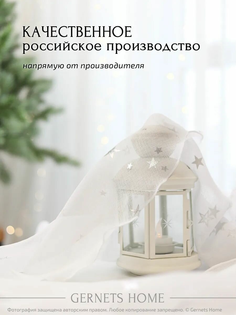 Тюль под лен ширина 260 высота 130 см на кухню со звёздами