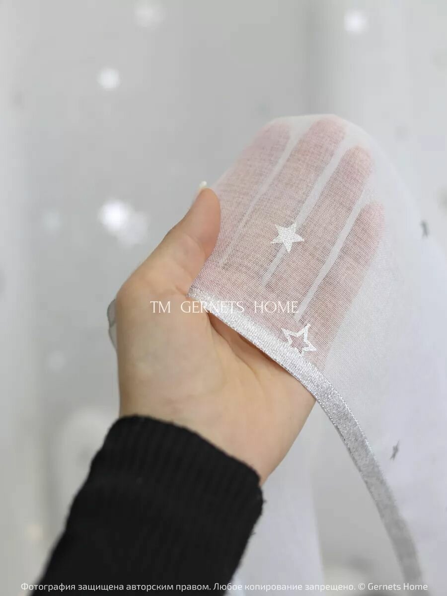 Тюль арка ширина 260 высота 120 см на кухню с рисунком "серебро звёзды" короткая