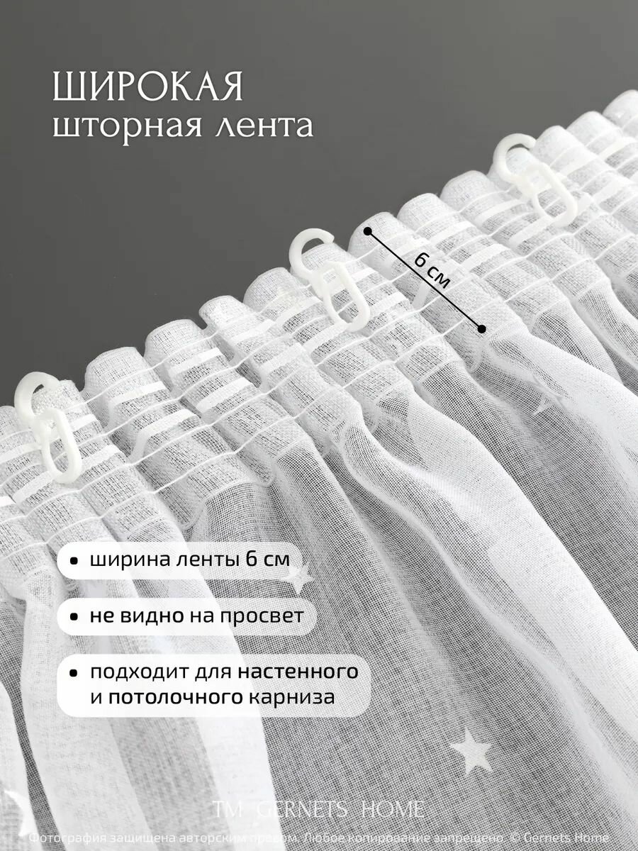 Купить Тюль под лен ширина 260 высота 130 см на кухню со звёздами