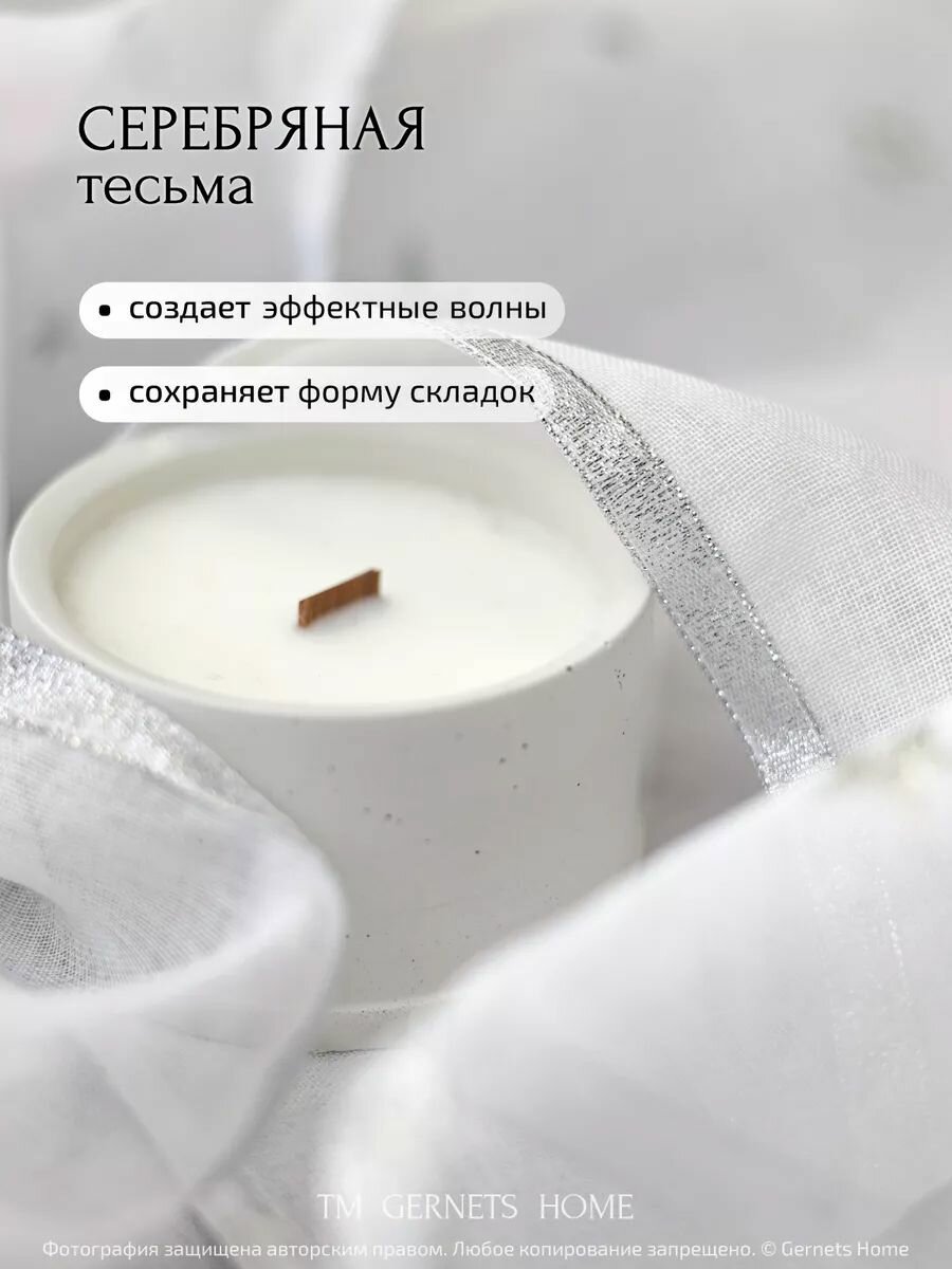 Тюль под лен 260 см ширина 160 см высота серебро-цветы короткий