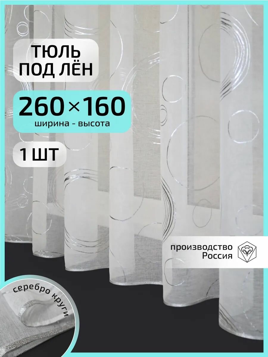 Купить Тюль под лен 260х160см с рисунком серебро-круги короткий