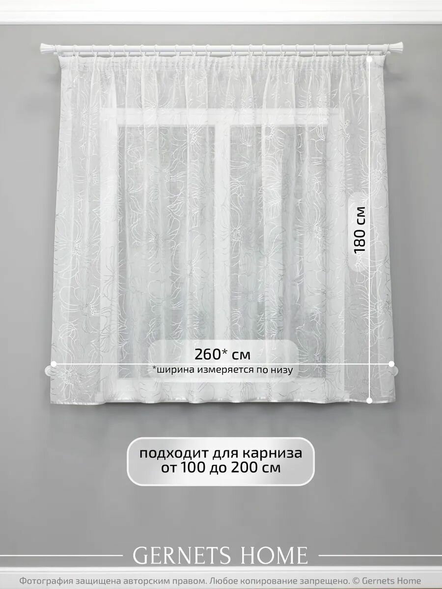 Тюль под лен 260 см ширина 160 см высота серебро-цветы короткий