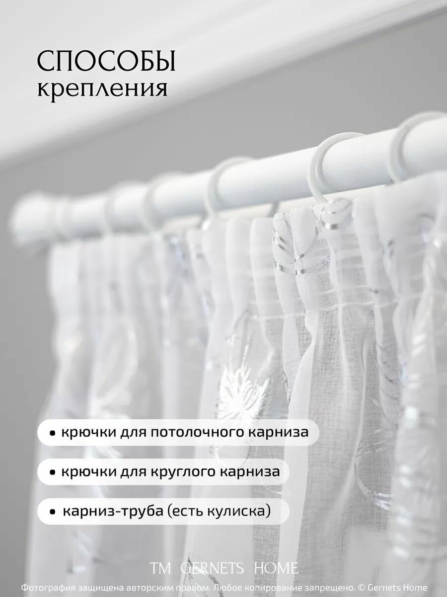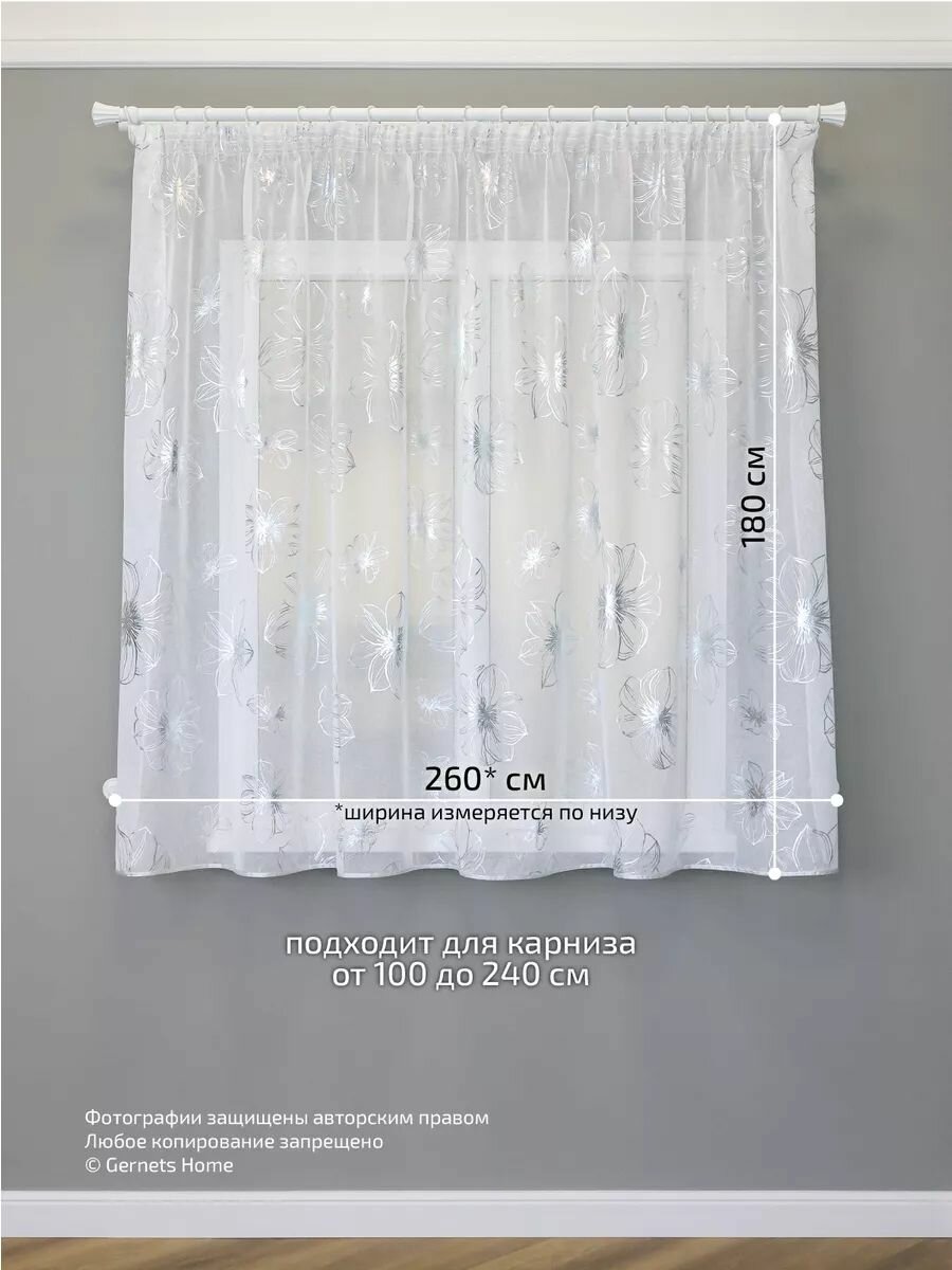 Тюль под лен 260 см ширина 160 см высота серебро-цветы короткий