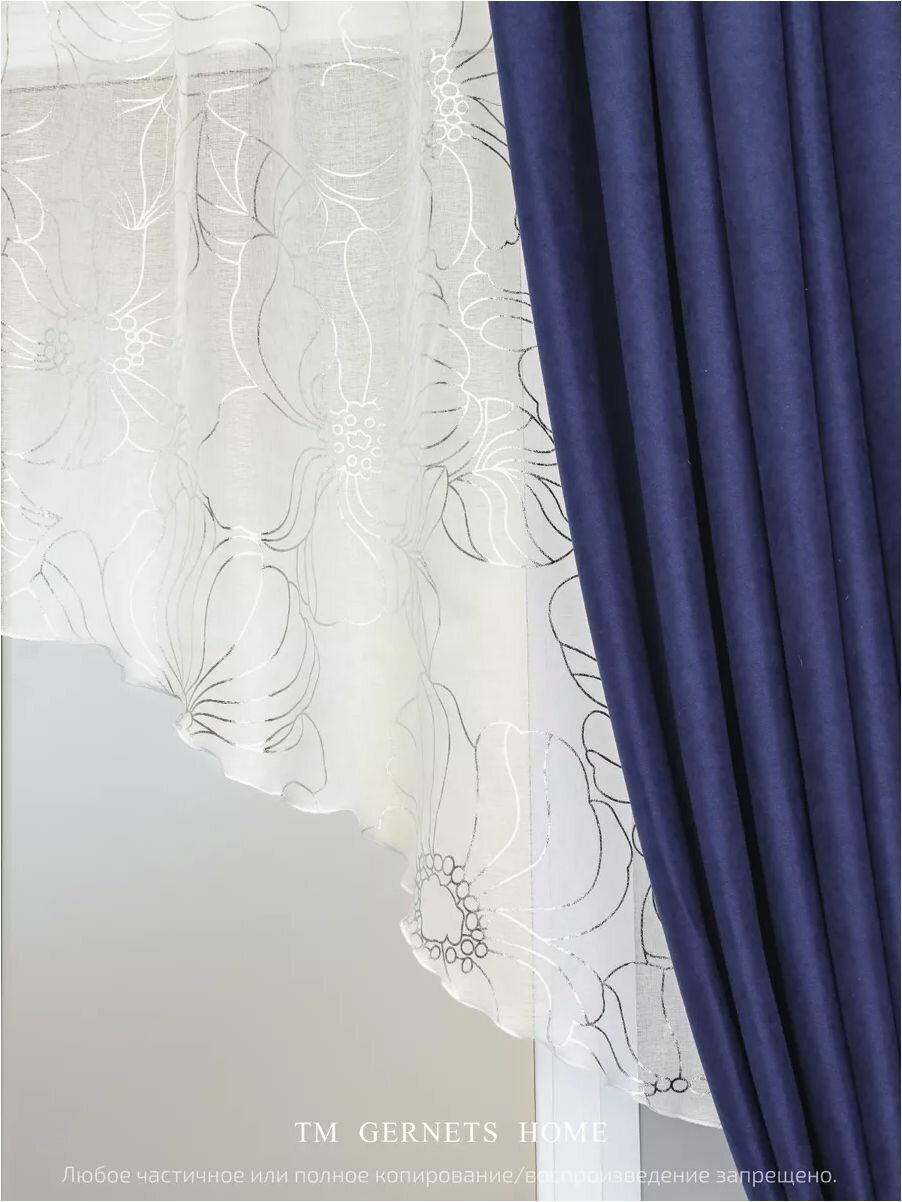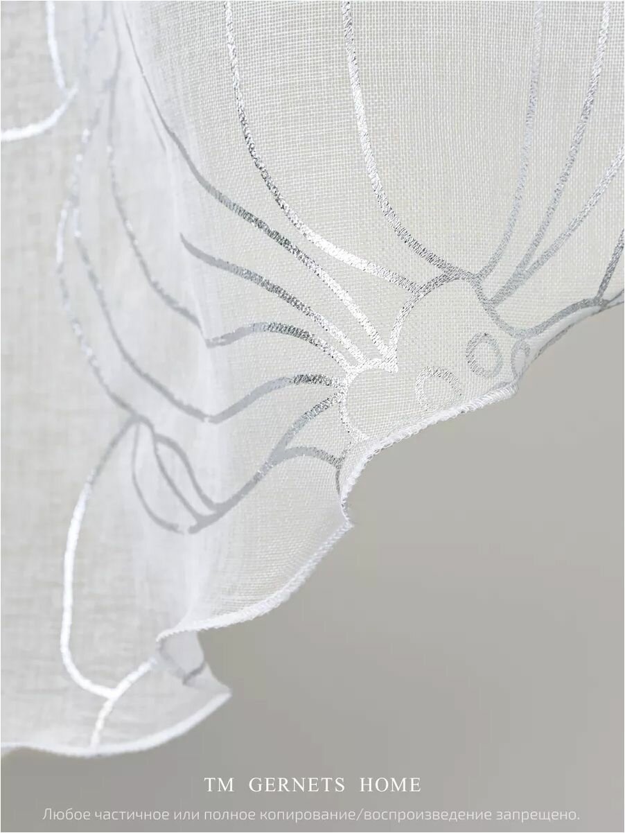 Тюль под лен 260 см ширина 160 см высота серебро-цветы короткий