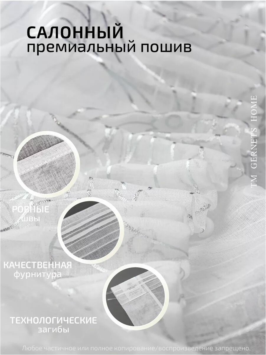 Тюль под лен 260х160см с рисунком серебро-круги короткий