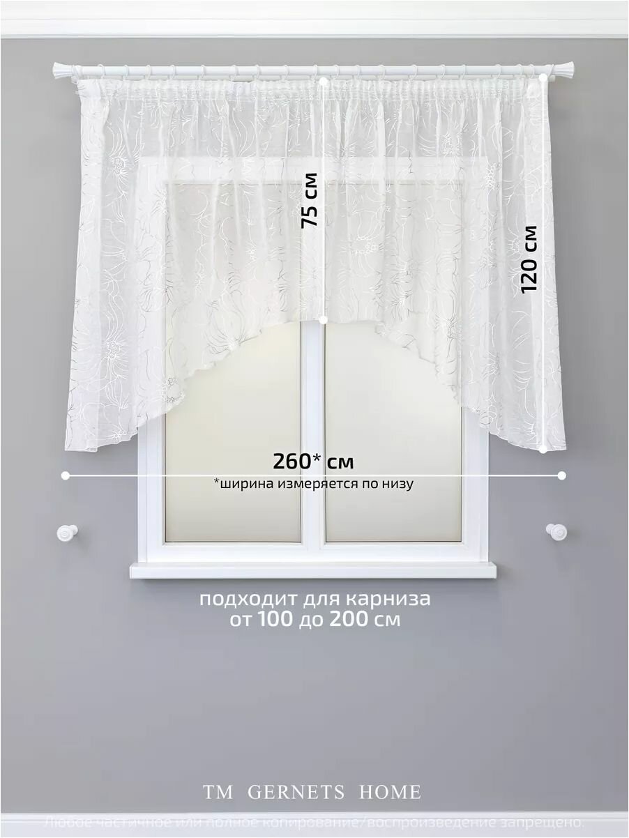 Тюль арка высота 120 см ширина 260 см для кухни белая короткая