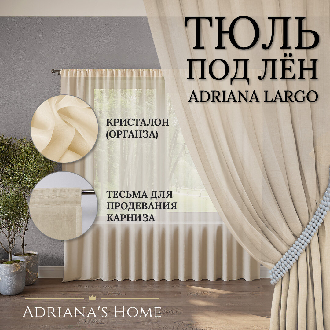 Тюль Adriana Largo, под лен, молочный, высота 260 см, ширина 600 см