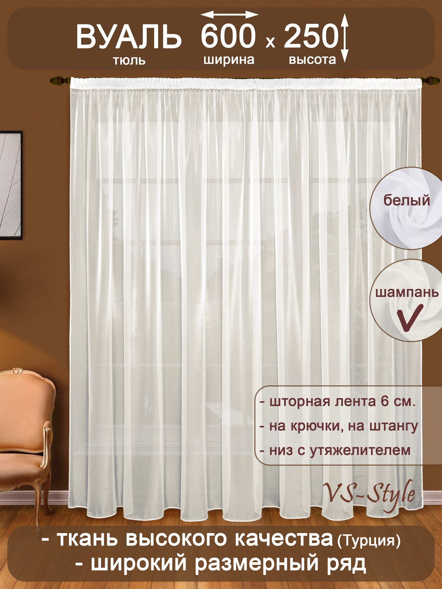 Тюль вуаль VS-Style Т103-1 ш600*в250 -1шт. белый, с утяжелителем.