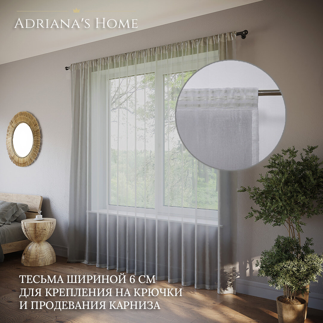 Тюль Adriana Lento (для высоких потолков), вуаль, серый, высота 300 см, ширина 290 см