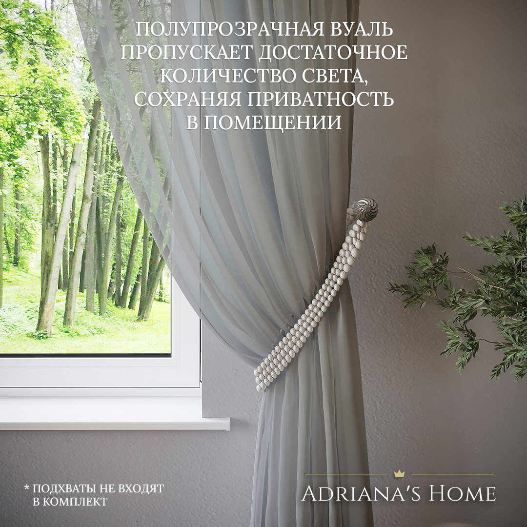 Тюль Adriana Lento (для высоких потолков), вуаль, серый, высота 320 см, ширина 250 см