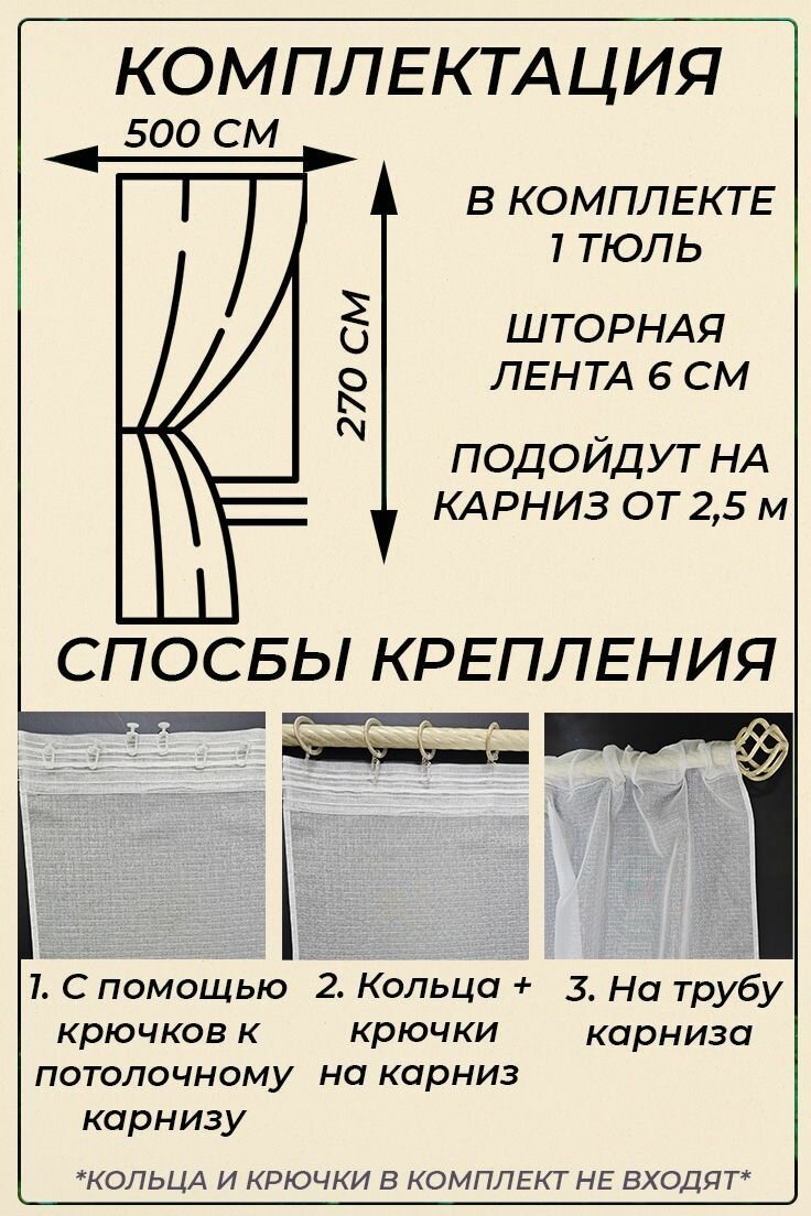 Тюль Лен с утяжелителем / Высота 250см Ширина 500см (2.5 на 5.0 м ) Тюль для кухни /Тюль в гостиную /Тюль в детскую /шторы