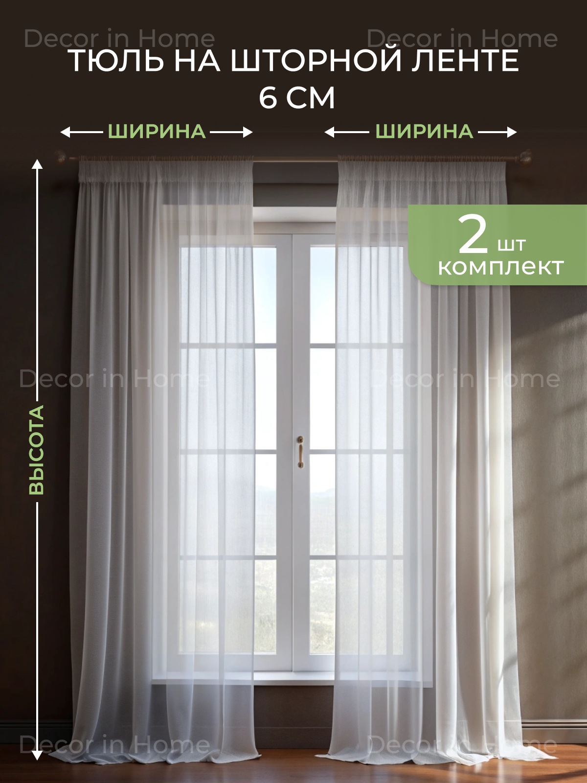 Тюль-Сетка "DÉCOR in Home" комплект из 2 шт, ширина 500 см, высота 300 см