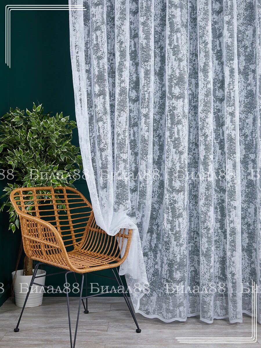 Готовый тюль сетка мрамор на шторной ленте высота 250 см ширина 300 см; занавеска в спальню