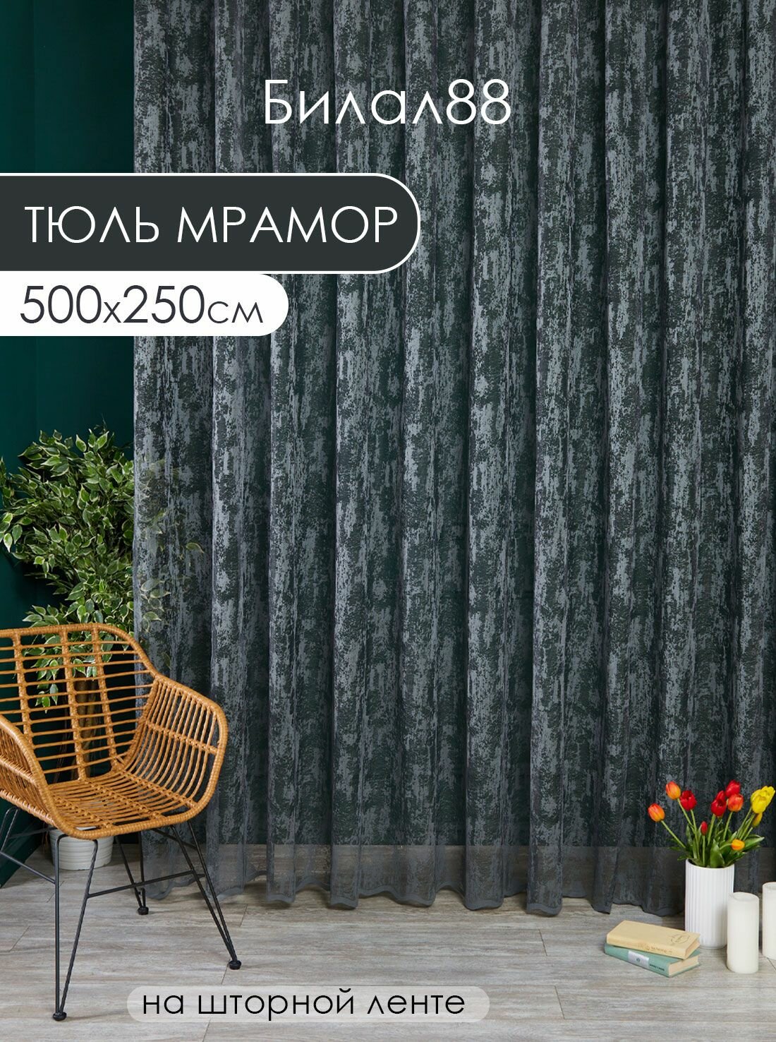 Готовый тюль сетка мрамор на шторной ленте высота 270 см ширина 500 см; занавеска в спальню