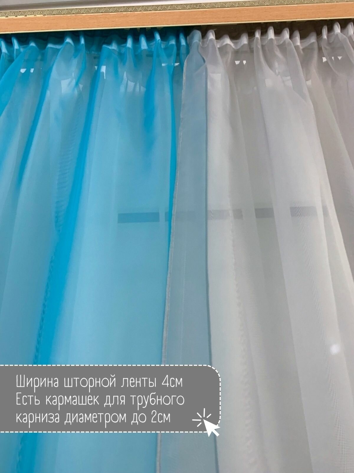 Шторы для кухни короткие тюль вуаль Домтекс35 "Радуга" 380*180см голубой/белый