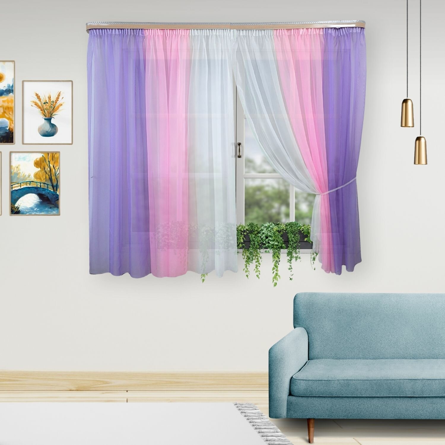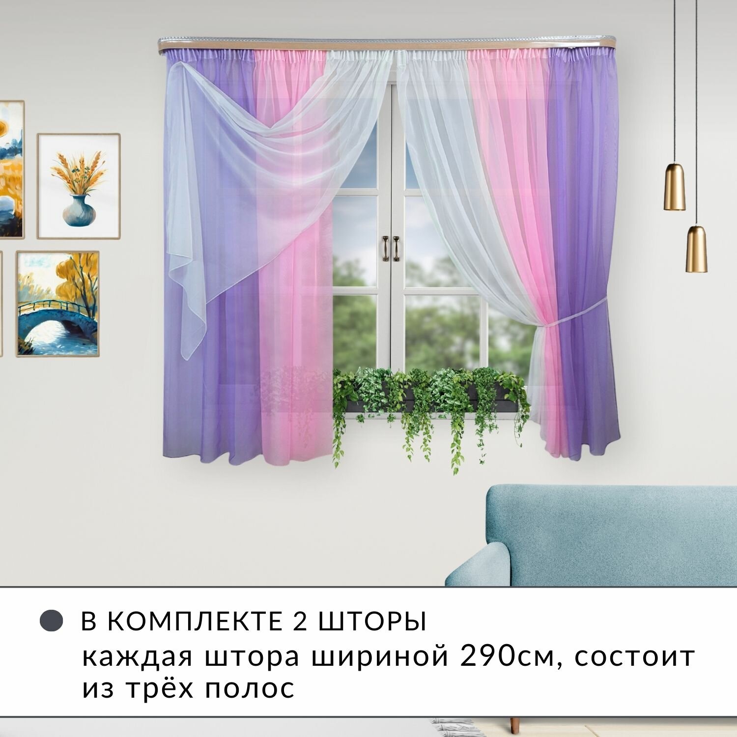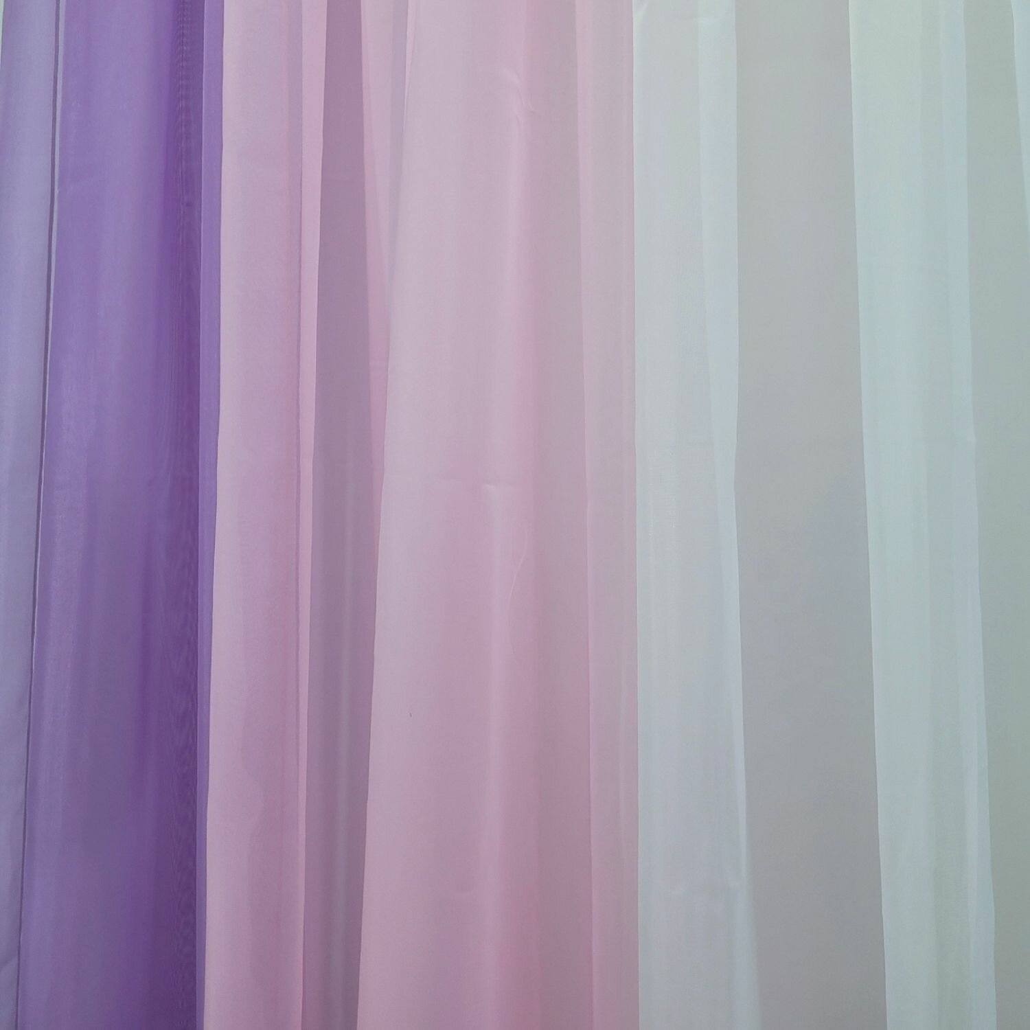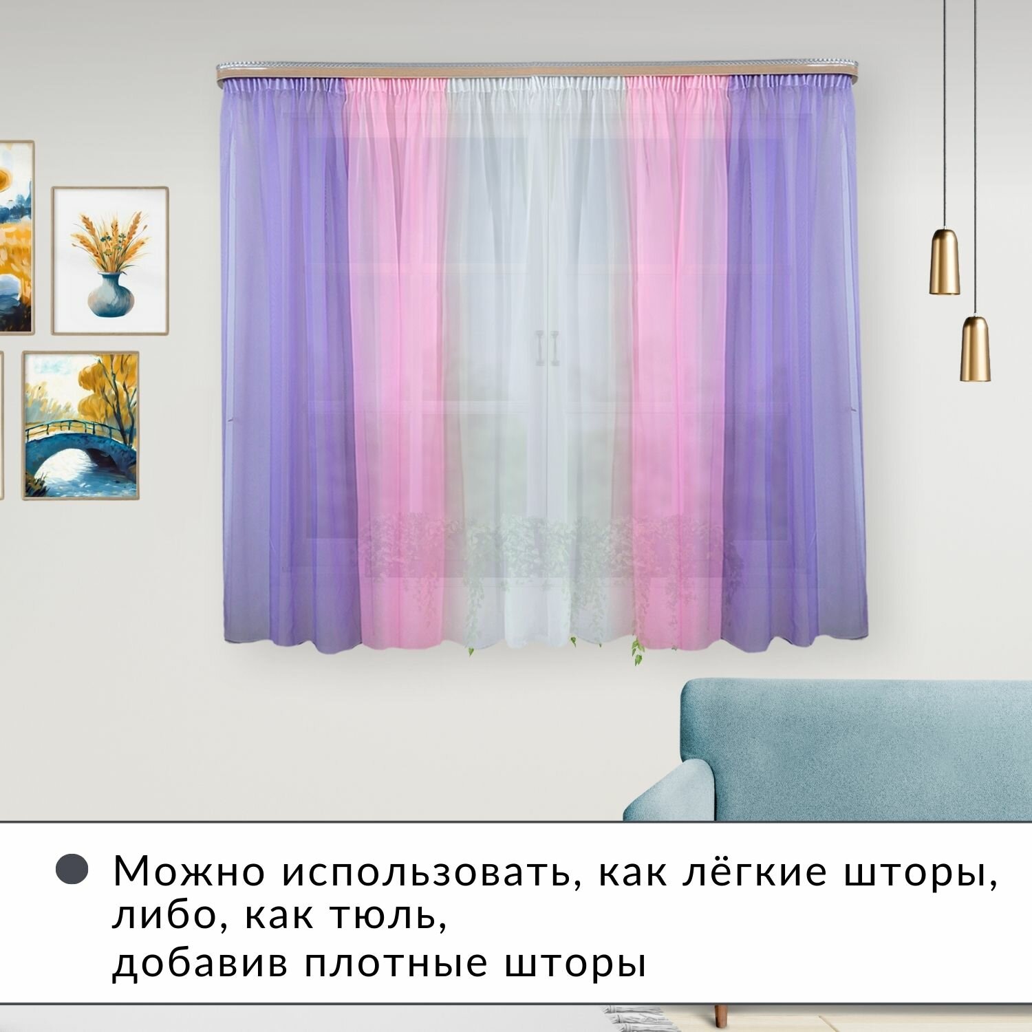 Шторы для кухни короткие тюль вуаль Домтекс35 "Радуга" 380*180см сиреневый/розовый