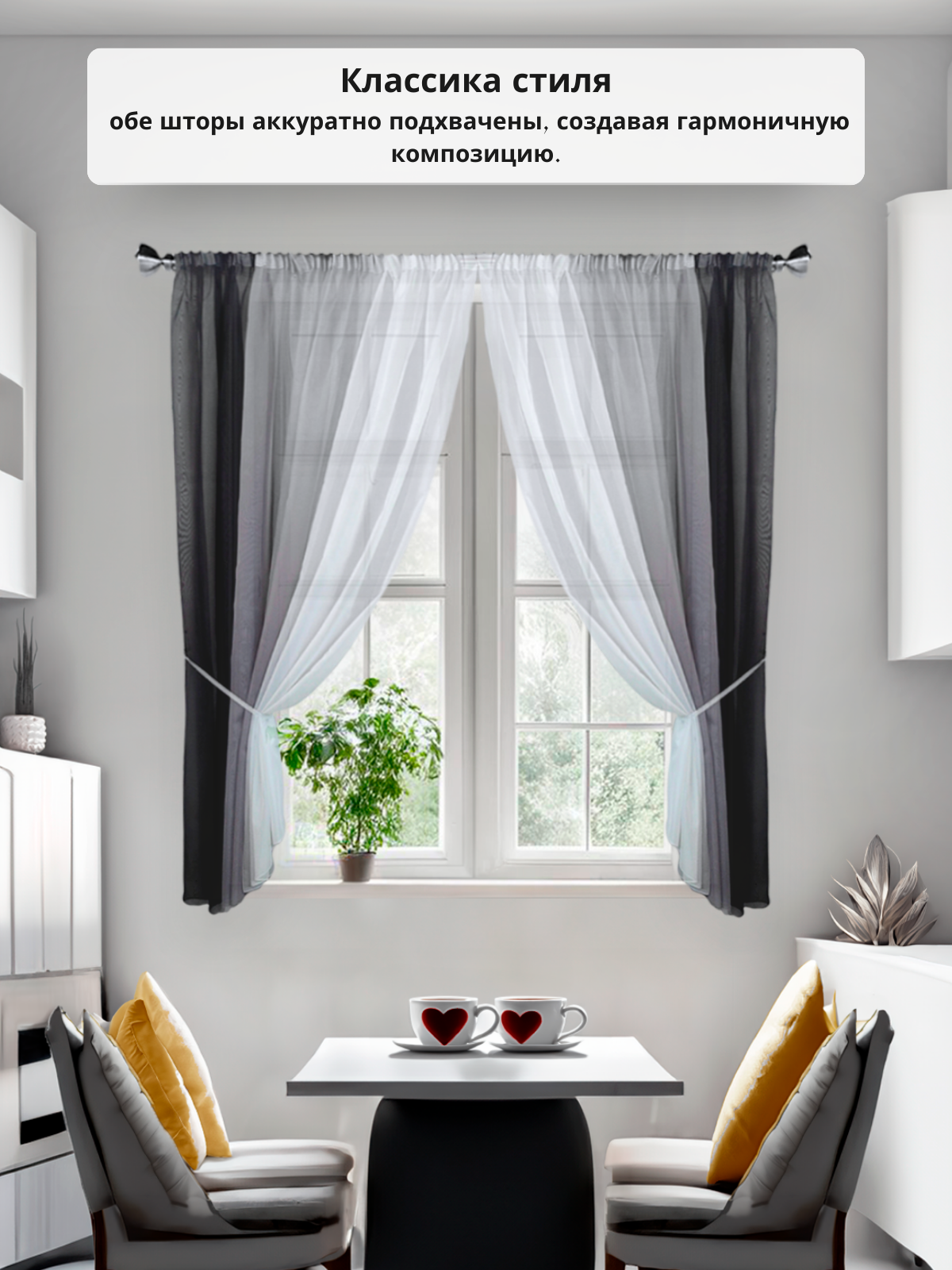 СохранитьШторы для кухни короткие тюль вуаль Домтекс35 "Радуга" 580*180см черный/серый интересное: