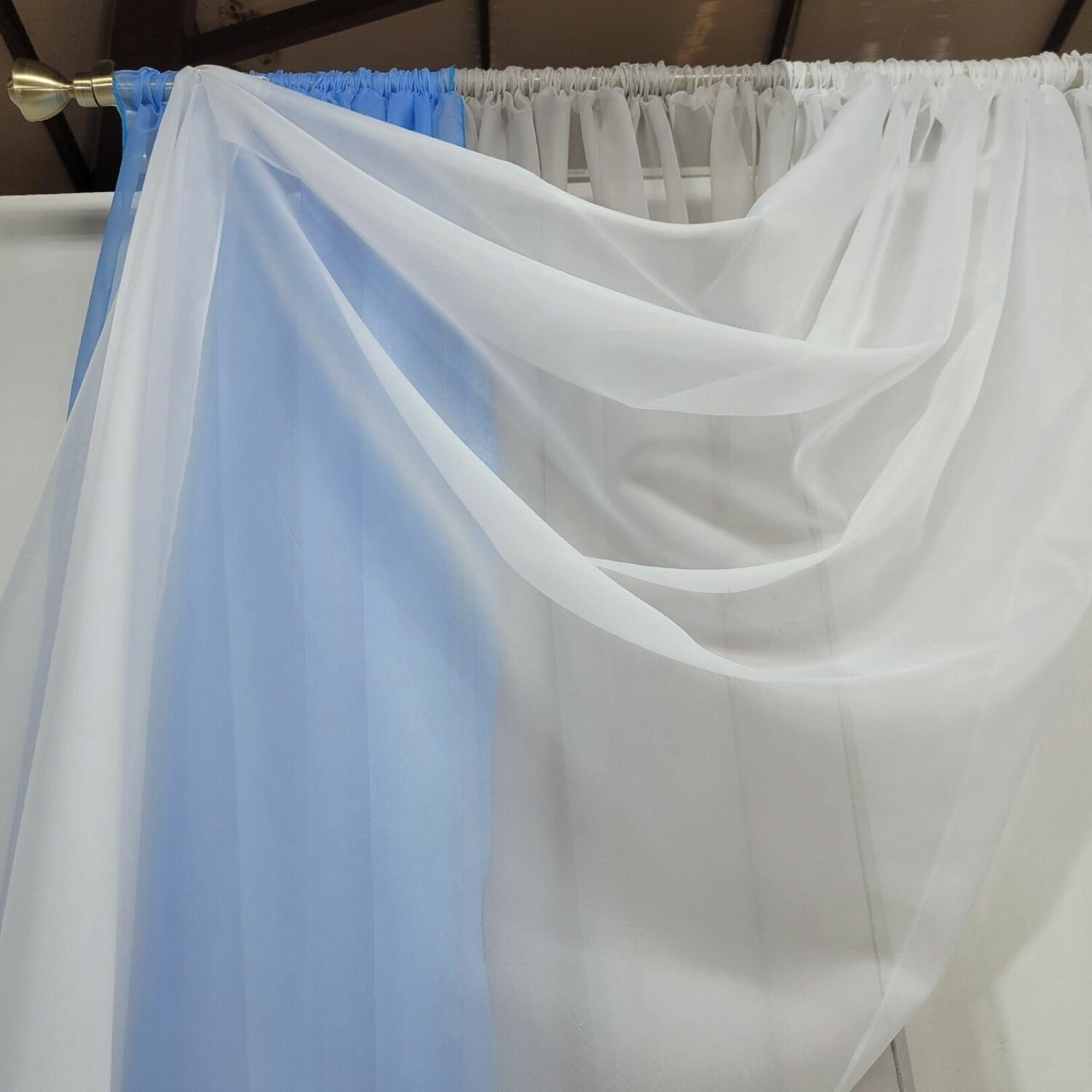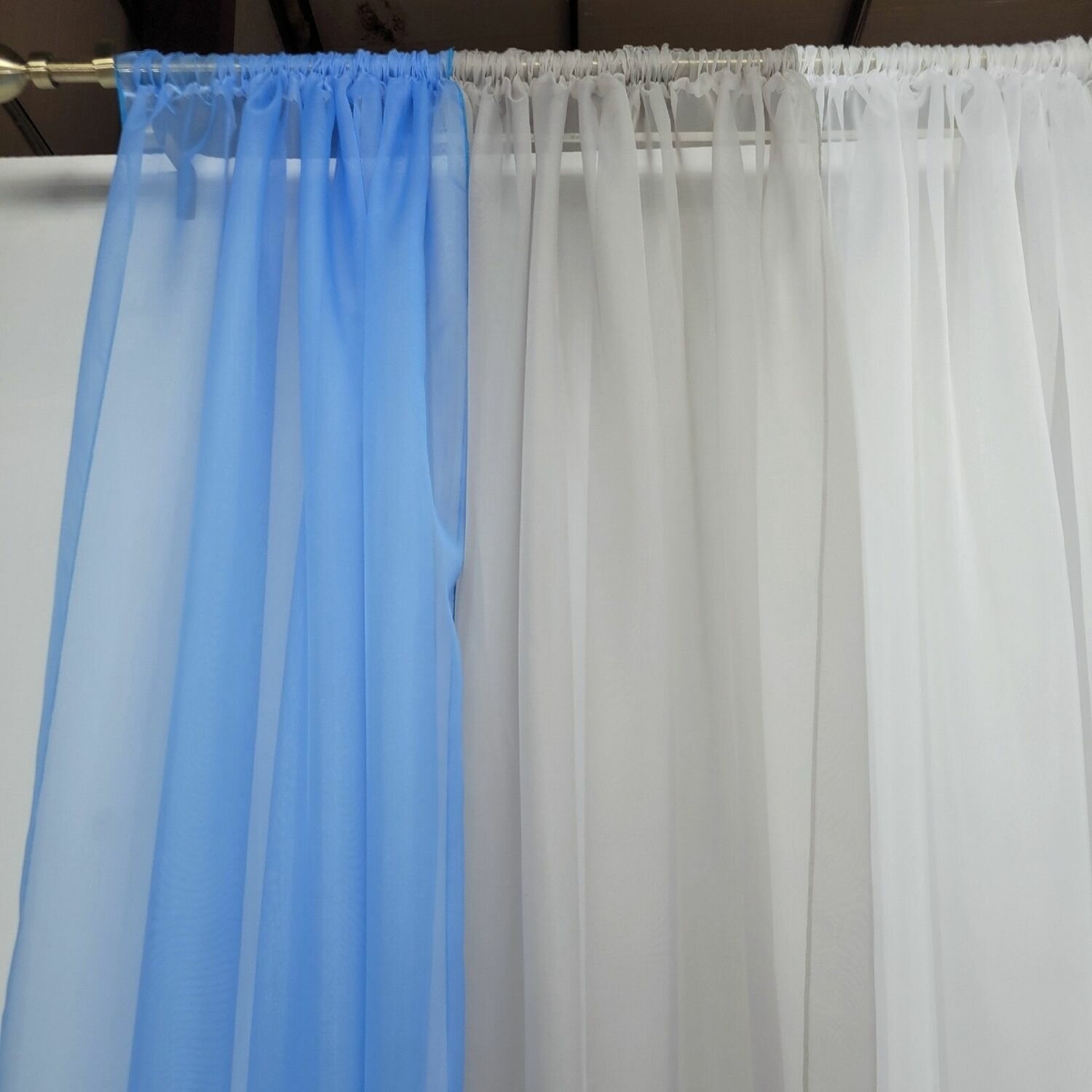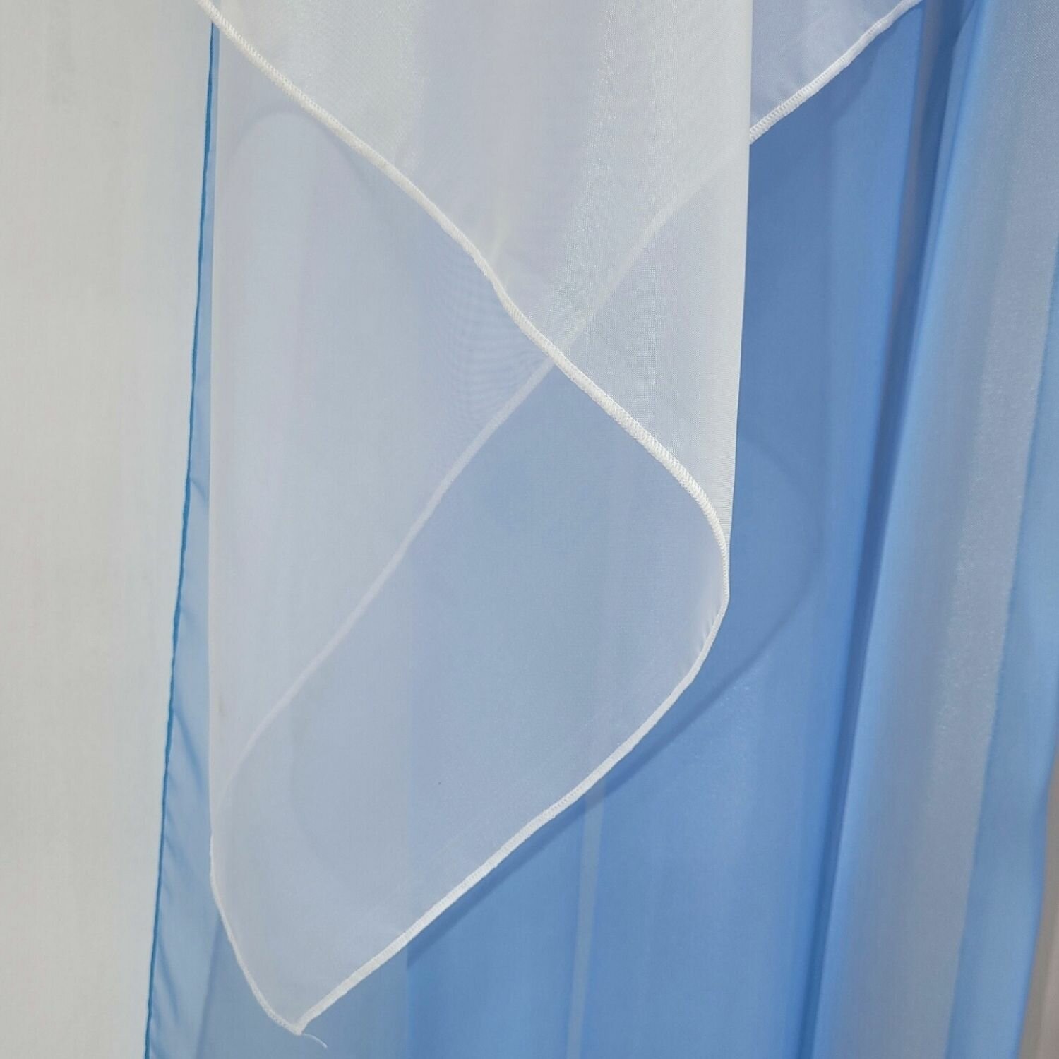 Шторы для кухни короткие тюль вуаль Домтекс35 "Радуга" 380*180см голубой/белый