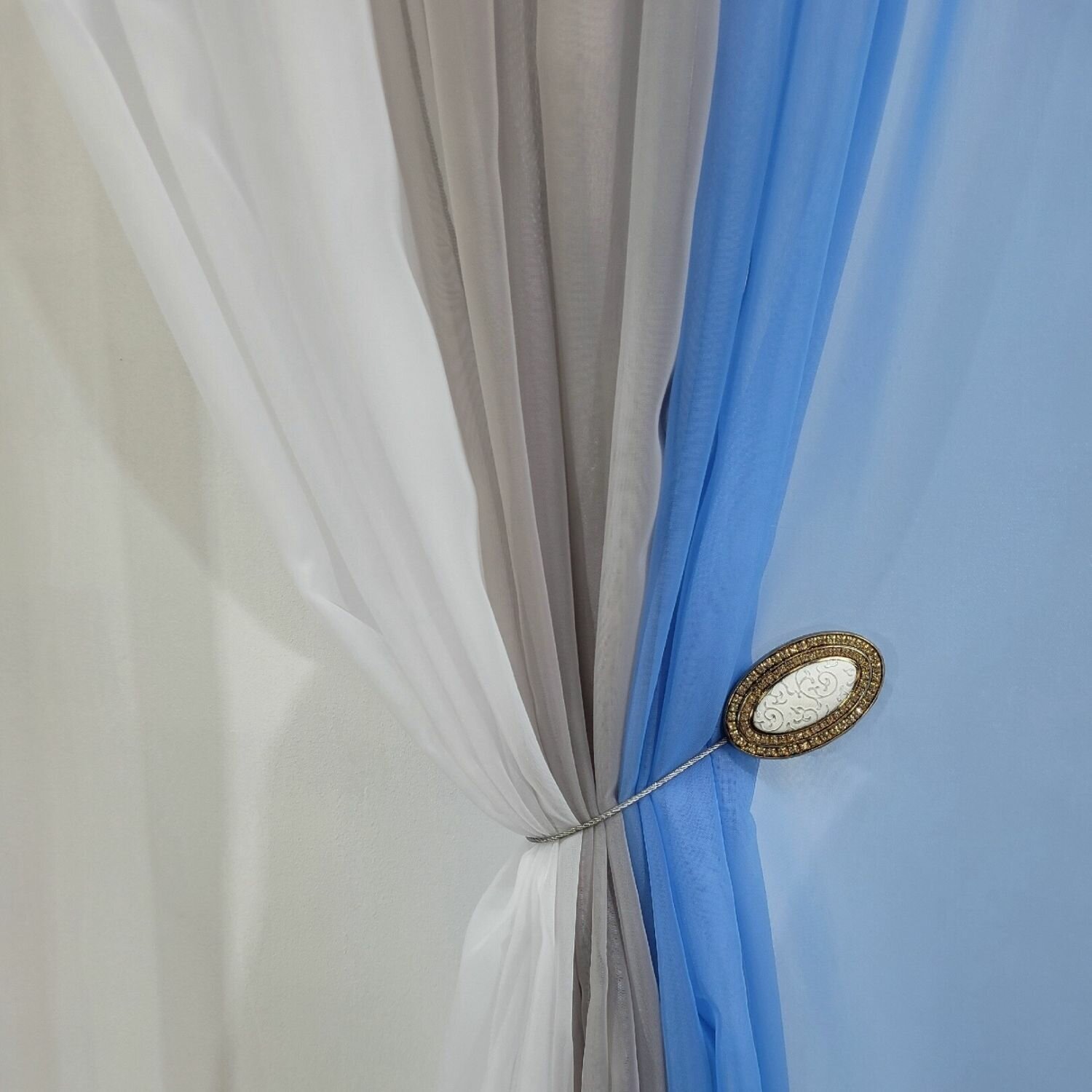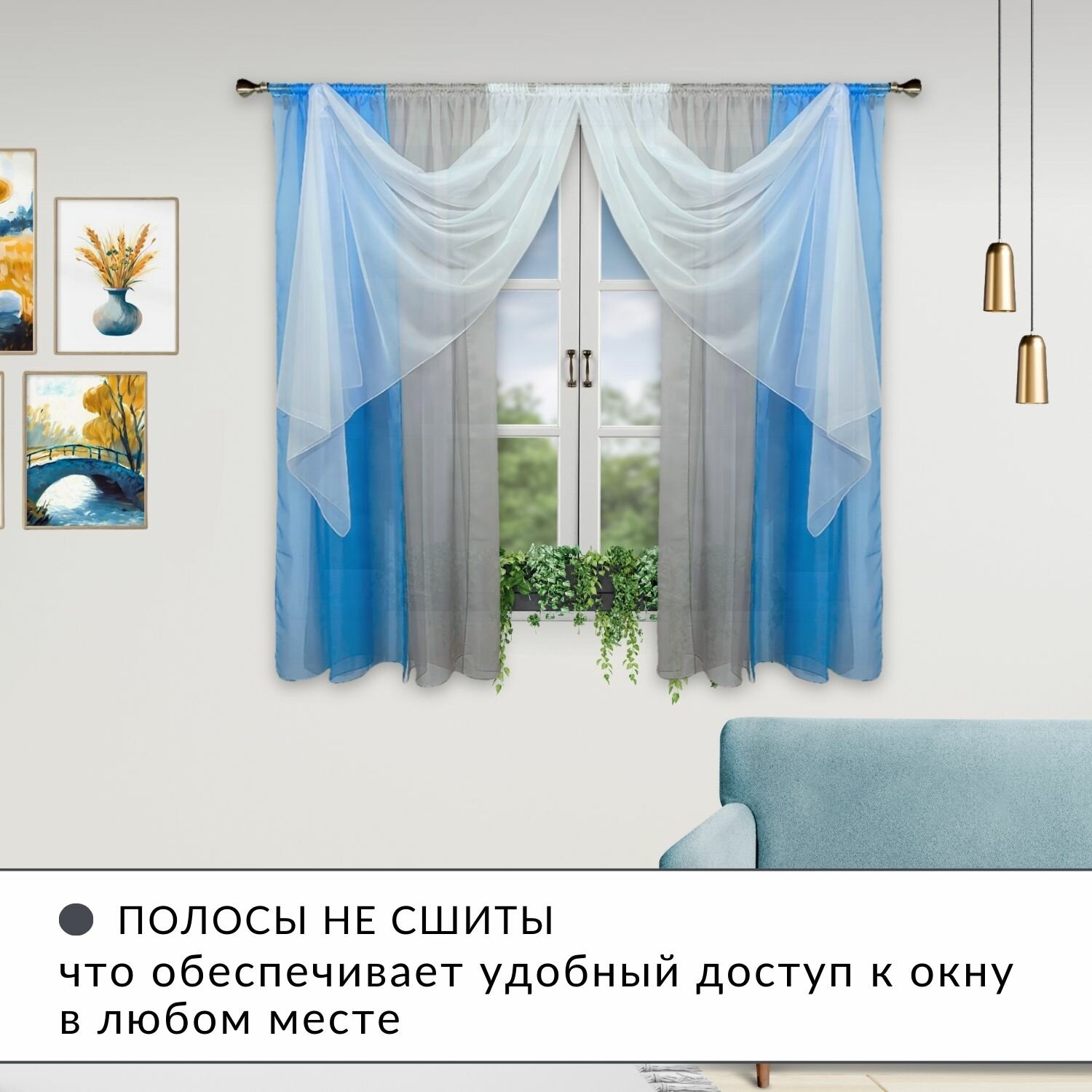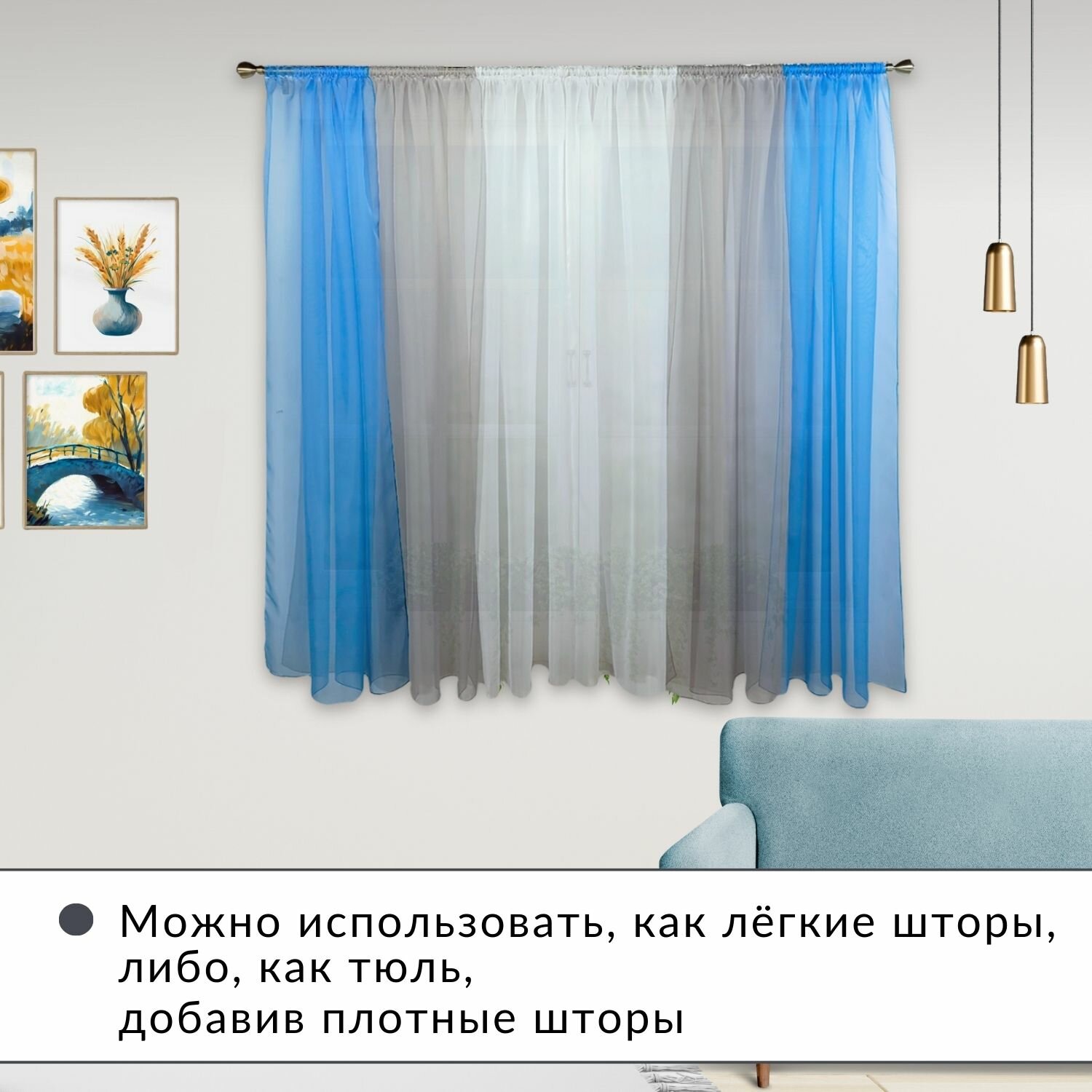 СохранитьШторы для кухни короткие тюль вуаль Домтекс35 "Радуга" 580*180см голубой/серый интересное: