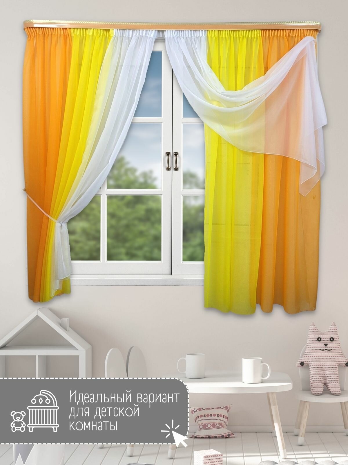 СохранитьШторы для кухни короткие тюль вуаль Домтекс35 "Радуга" 580*180см оранжевый/желтый интересное:
