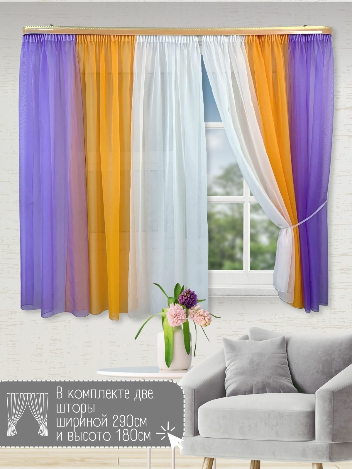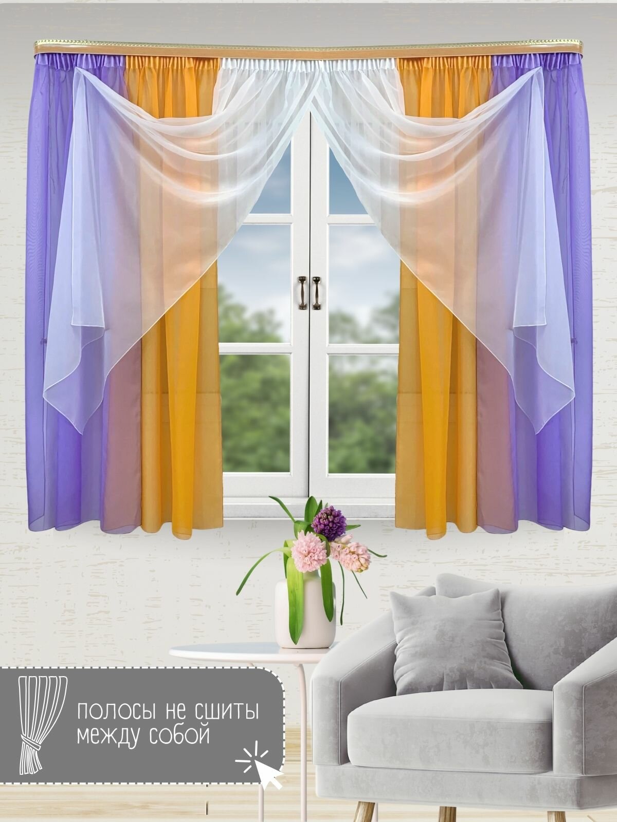 Купить Шторы для кухни короткие тюль вуаль Домтекс35 "Радуга" 580*180см сиреневый/оранжевый