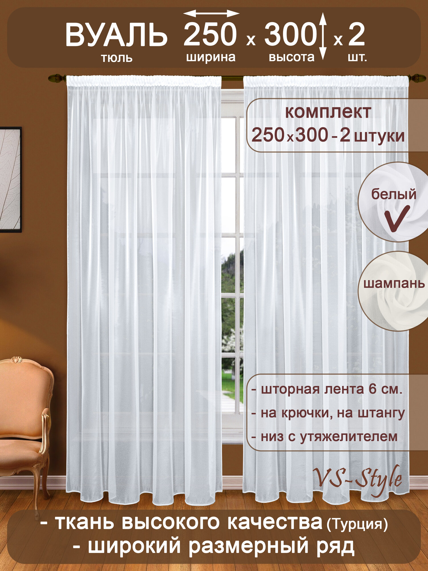 Купить Тюль вуаль VS-Style комплект Т104-1 ш250*в300 -2шт. белый, с утяжелителем.