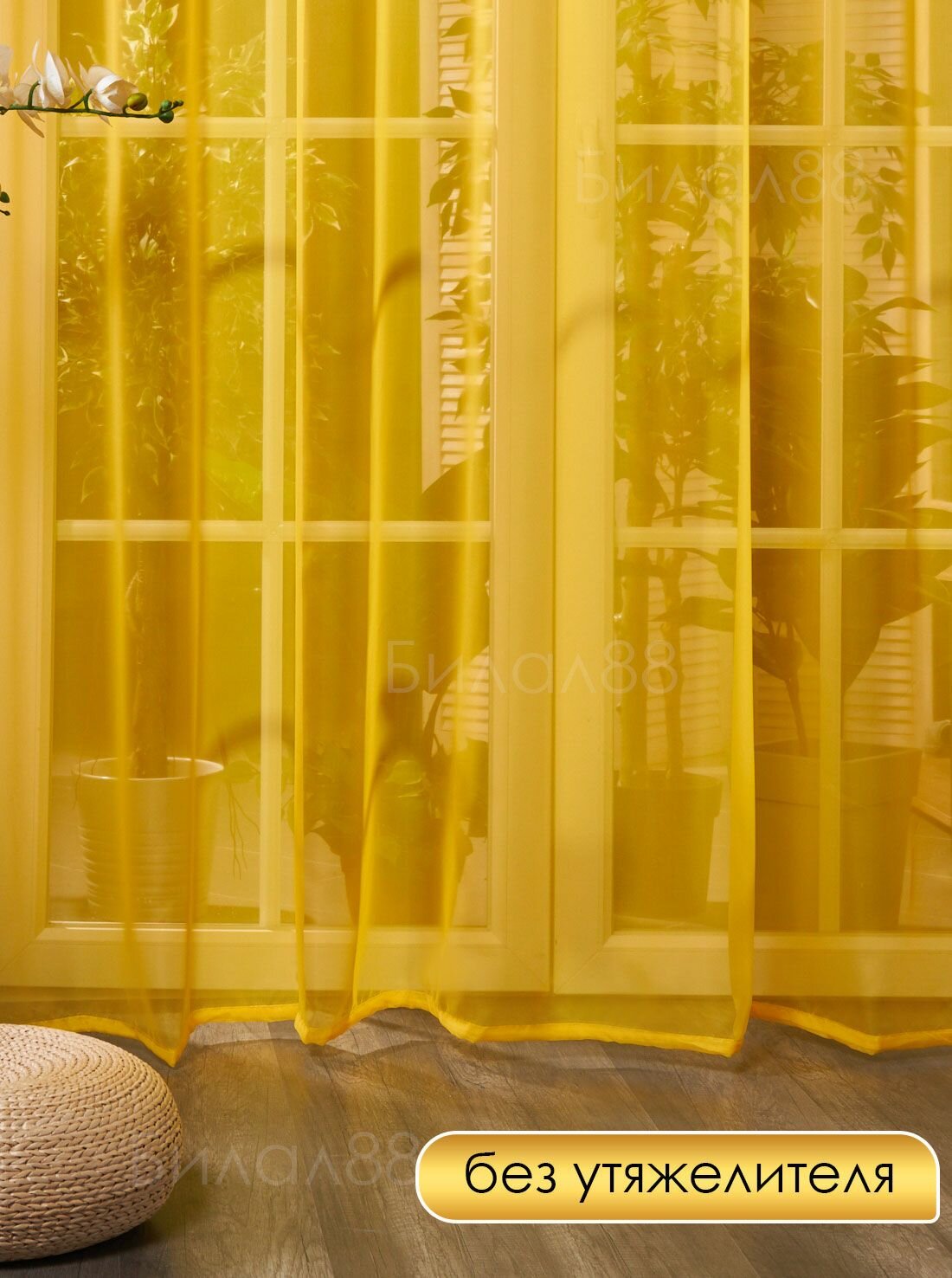 Тюль без рисунка 300х270 см в гостиную и спальню, готовая цветная штора для кухни и дачи