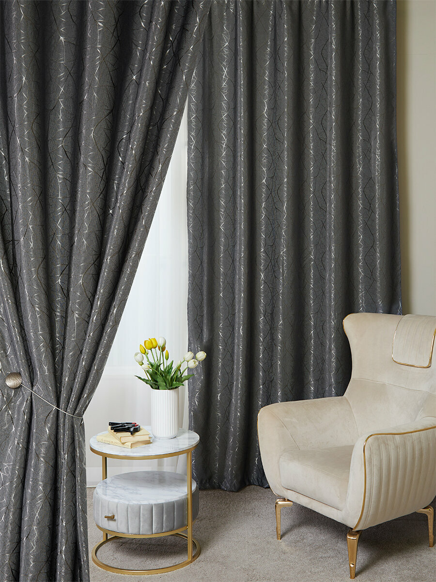 Готовый комплект плотных интерьерных штор(портьер) с узорной вышивкой (2 шт, каждая штора 200x270 см) со шторной лентой