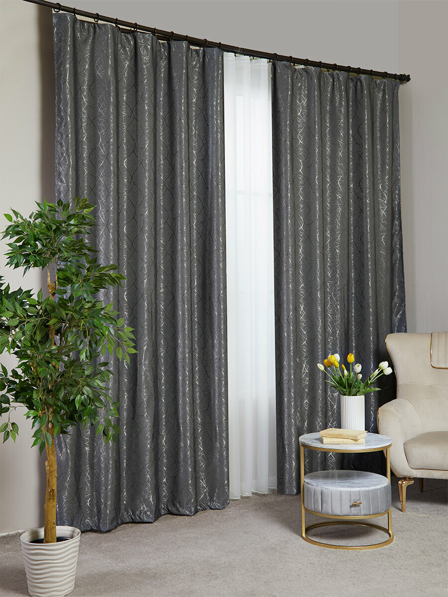 Готовый комплект плотных интерьерных штор(портьер) с узорной вышивкой (2 шт, каждая штора 150x150 см) со шторной лентой