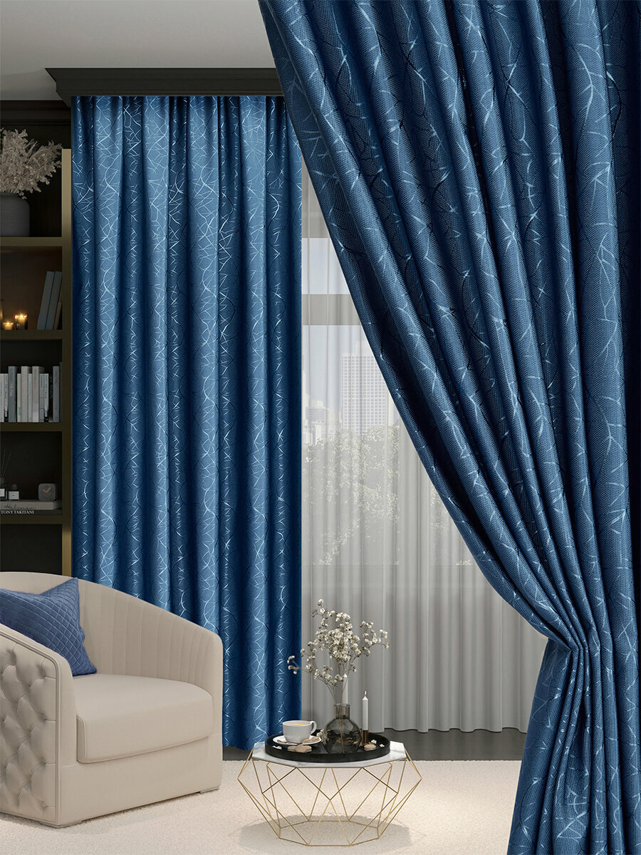 Готовый комплект плотных интерьерных штор(портьер) с узорной вышивкой (2 шт, каждая штора 150x200 см) со шторной лентой