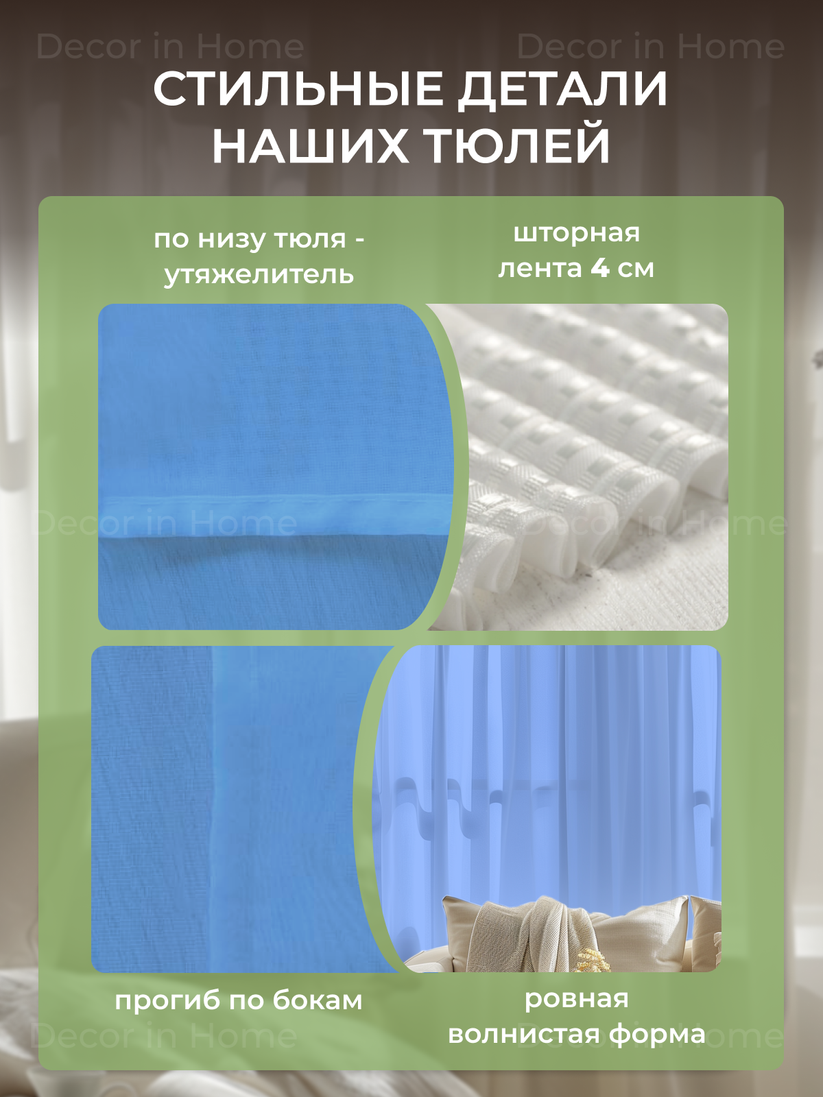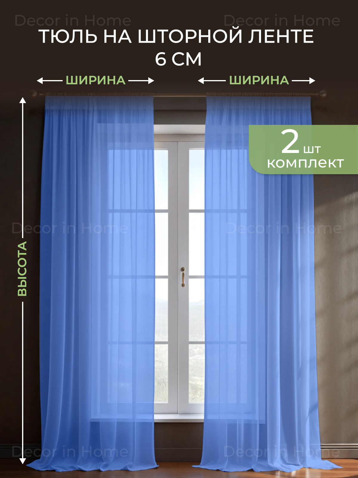 СохранитьТюль-Вуаль "DECOR in Home" комплект из 2 шт, синий, ширина 500 см высота 270 интересное: