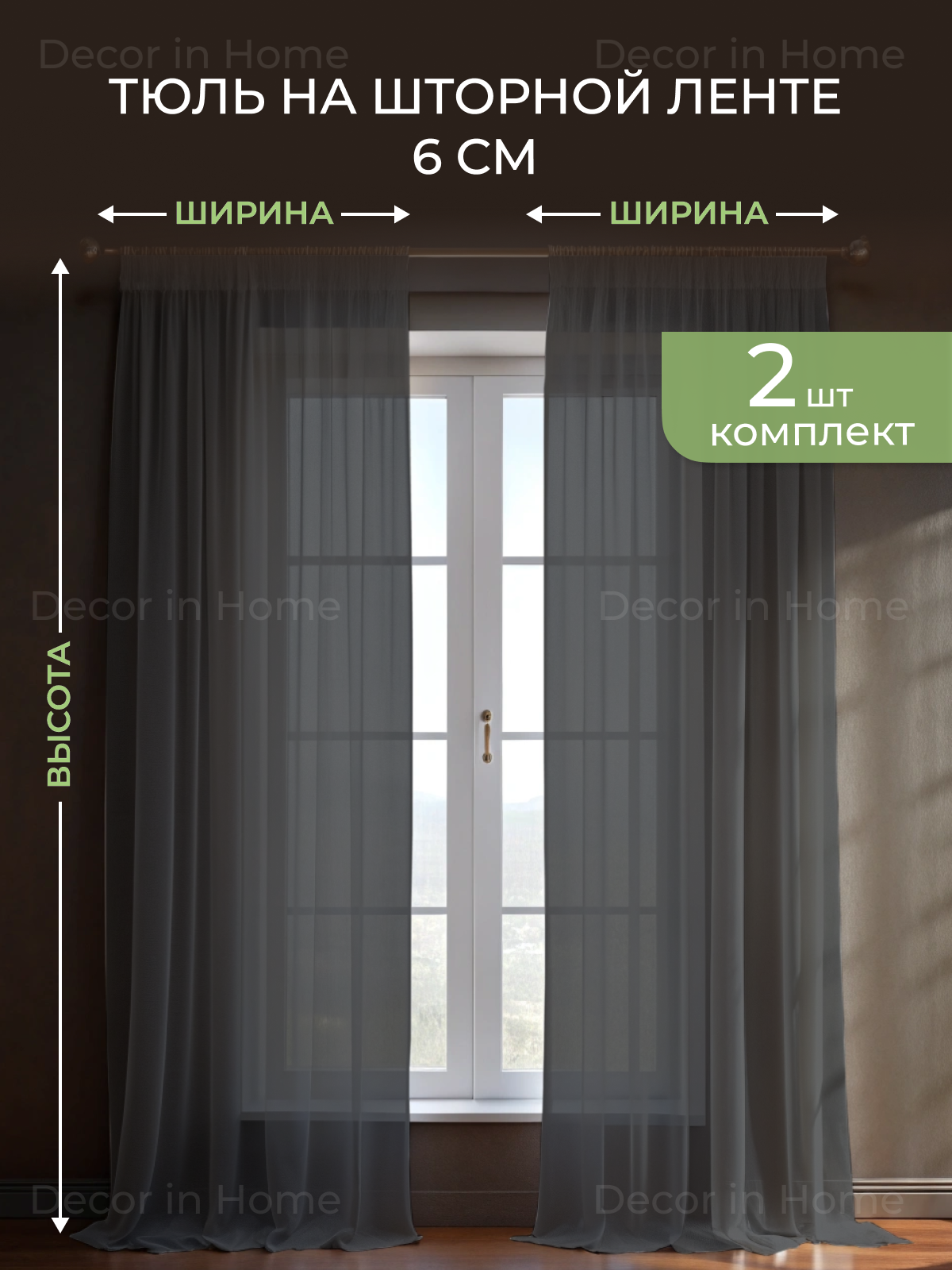 Купить Тюль-Вуаль "DECOR in Home" комплект из 2 шт, чёрный, ширина 500 см высота 270