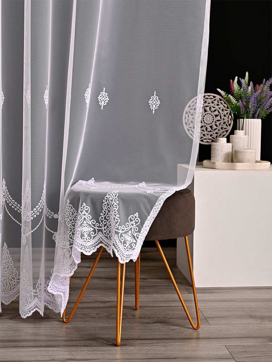 Однотонный тюль грек сетка с узорной вышивкой и люрексом 600x230 см.